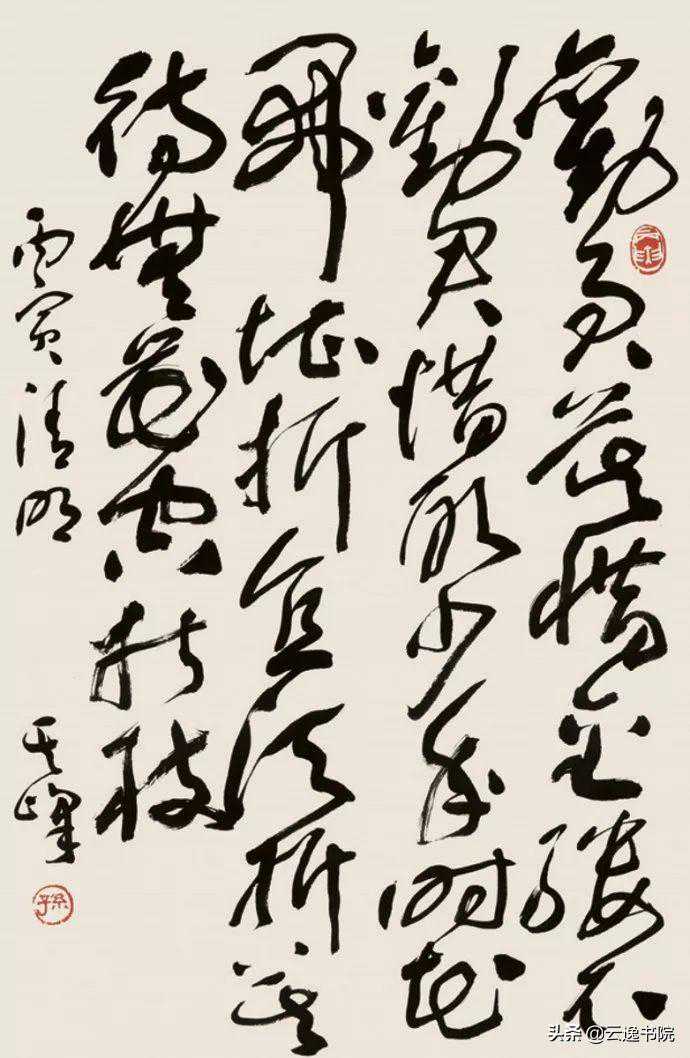再观赏孙其峰的草书,更使人过目难忘。他的草书法二王、承旭素、继允明,集历代书法家特点于一身,使转灵活而不飘浮,点画飞动而又沉稳。整幅作品在律动的美中潜存着淡静,没有一点儿火气。这也充分反映出人们常称颂孙其峰为人谦和的一面。