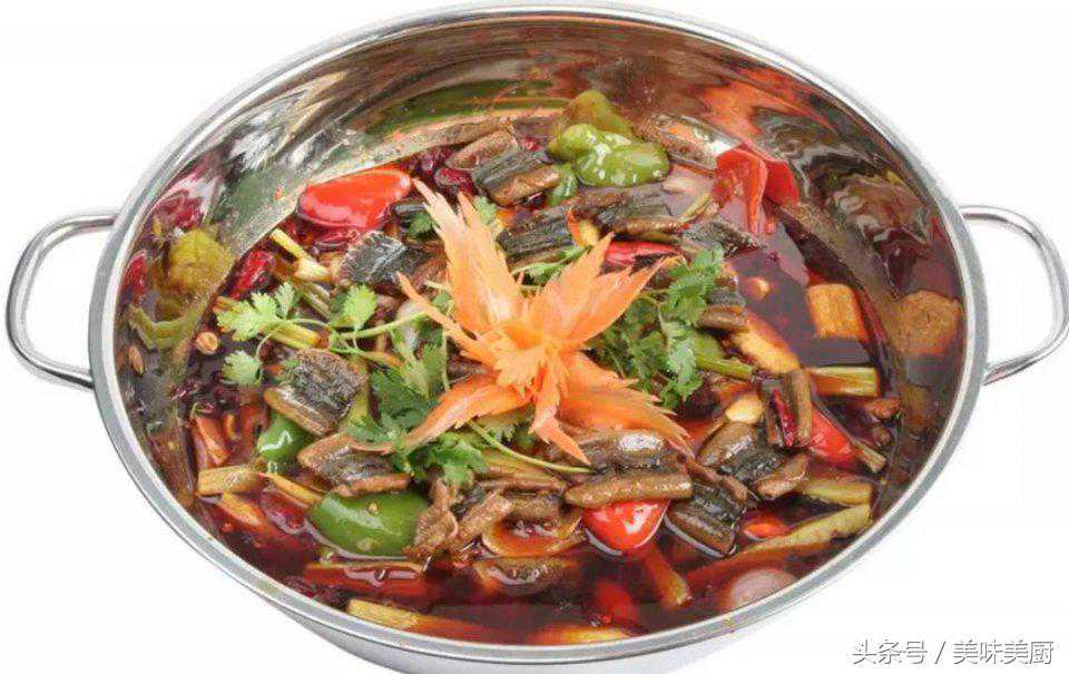 鳝鱼片1000克,毛肚500克,黄喉500克,牛肉44克,海带、藕片、豆腐皮、生菜各200克。