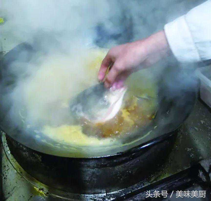 锅底置炉具上,上桌后,即捞出鱼头食用。待鱼头食完后,再放其他原料涮食。