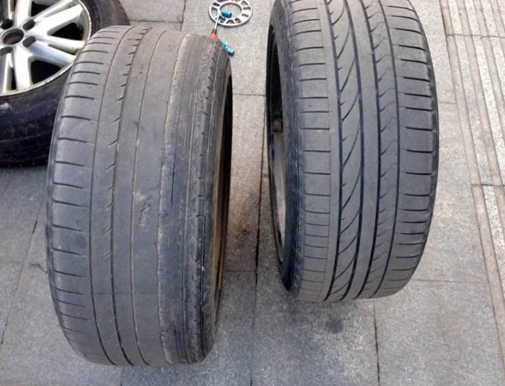 2、胎压异常轮胎胎侧上均标有最大许可气压,车主们在使用中,必须将轮胎胎压控制在标准范围内。胎压过大,轮胎刚性变大,高速行车过程中车辆剧烈颠簸会给驾乘人员带来不适感,轮胎胎冠中部产生异常磨损;胎压过小,行车过程中,胎侧曲挠程度加大,可能造成轮胎鼓包、子口裂等问题,轮胎胎肩部位可能发生异常磨损,油耗也会相应增加。