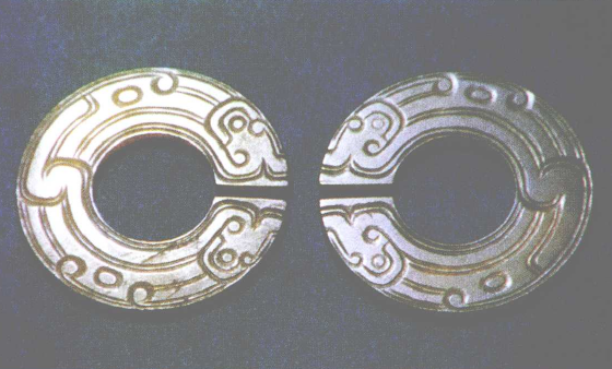 从春秋早期的黄君孟夫妇合葬墓出土的玉器看,不论黄君孟或其妻,都有成双成对且形式大小相同的玉器发现。