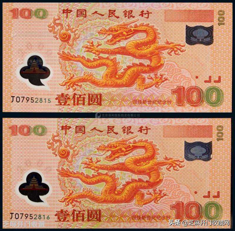 4:2000年中国人民银行壹佰圆。纪念龙钞。两张,估价:USD500-750,成交价格:USD810