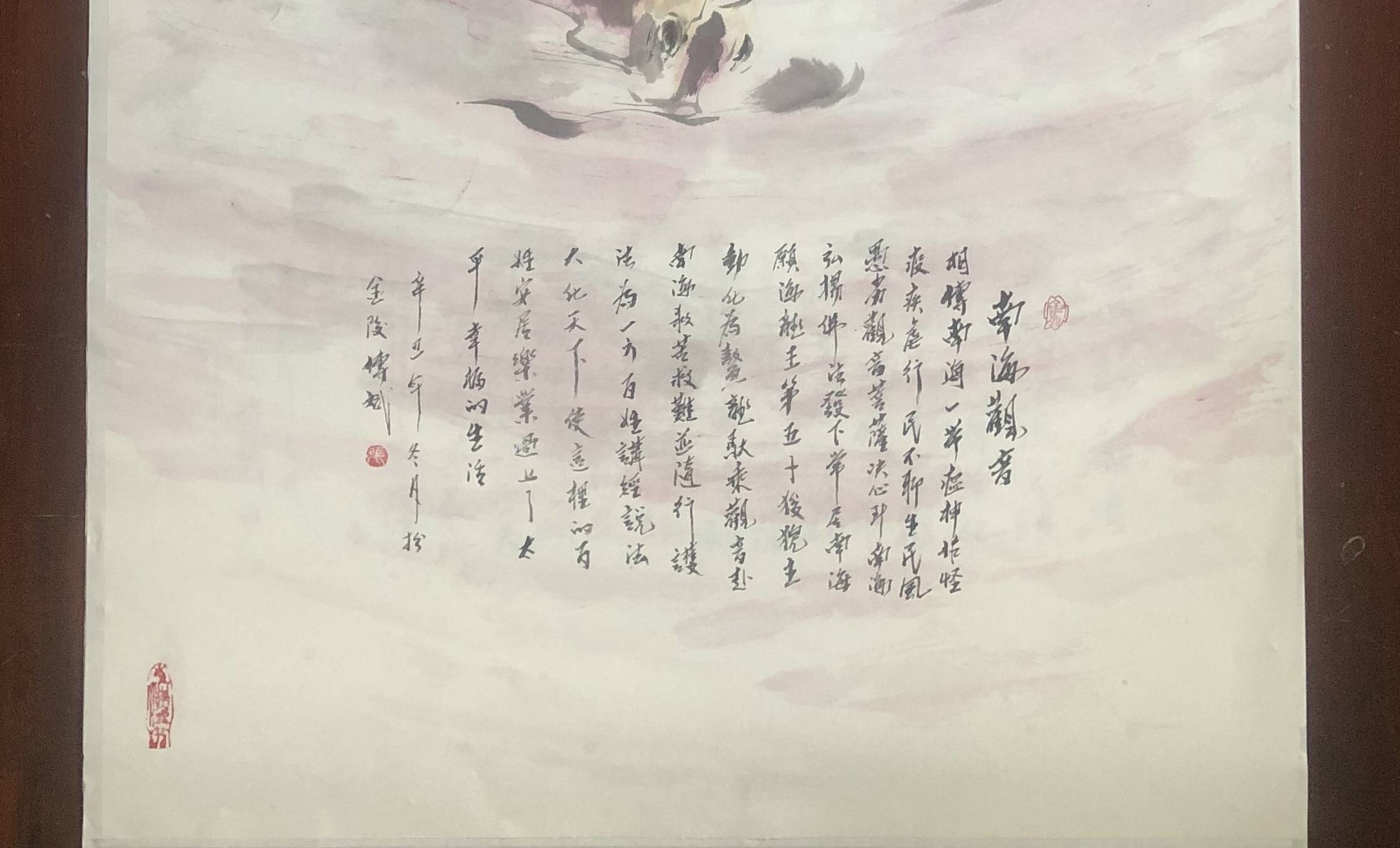 尺寸:137CMx68CM“东海渔翁”张传斌教授《南海观音》国画作品