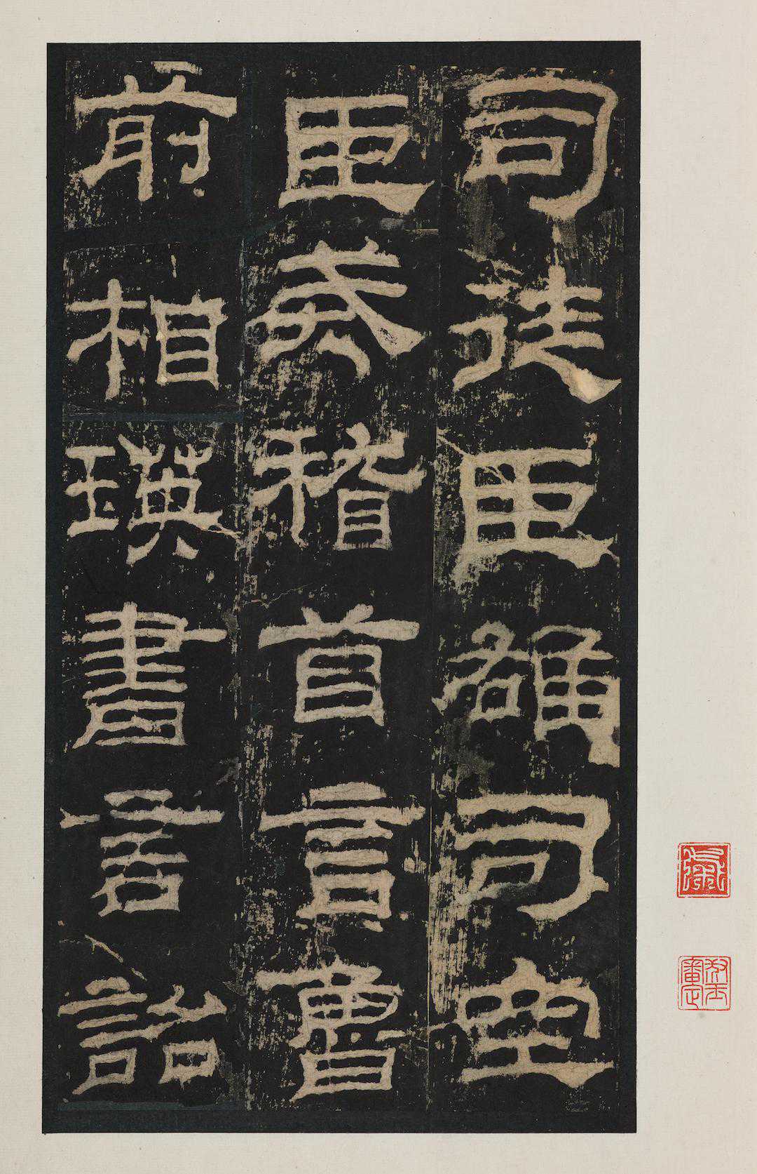 汉魏碑刻中的明拓善本,是戚叔玉碑帖收藏的一大特色,颇见珍品。此册系张德容二铭草堂旧藏,碑阳、阴全,十一行“春秋行礼”之“秋”字基本完好,首笔未损,十二行“增异辄上”之“增”字“日”部中横完好,下未连石花,应属明拓“秋”字本中的早本。前有张德容、郑孝胥、张伯英、戚叔玉题签,后有咸丰七年(1857)张德容题跋,又有宝熙题跋。明拓多见墨色伤浓者,此本则毡墨至精,字口清晰,且“前后碑一律,固是甲观”(宝熙跋语),洵为不可多得之善拓。