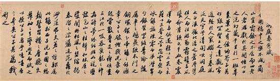 在翁方纲晚年的嘉庆年间,他与从朝鲜来中国的“留学生”或使者们一起交流切磋甚密,把寿苏风气传到了朝鲜。这些人有金正喜、申纬、曹龙振、李祖默等人。朝鲜的寿苏会上,展出经由翁方纲临摹的《天际乌云帖》书法作品是最重要的环节之一。