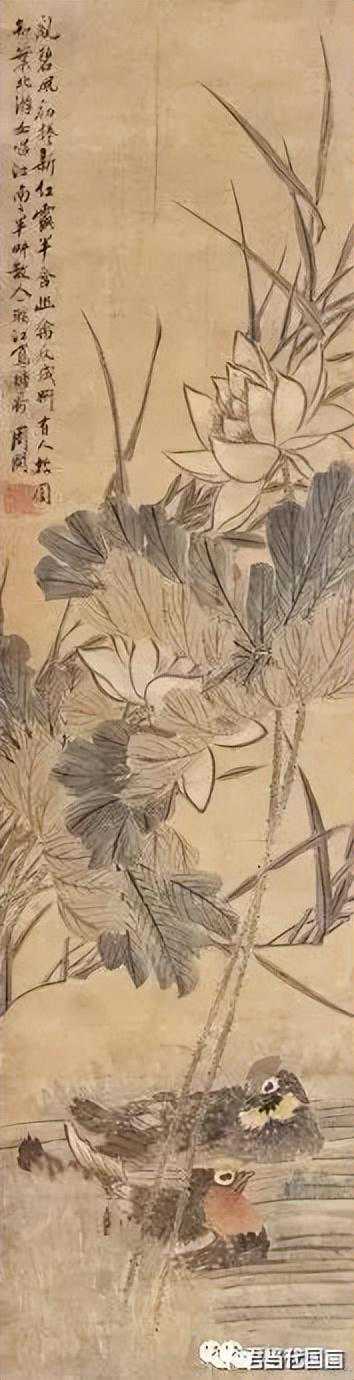 荷花鸳鸯设色纸本