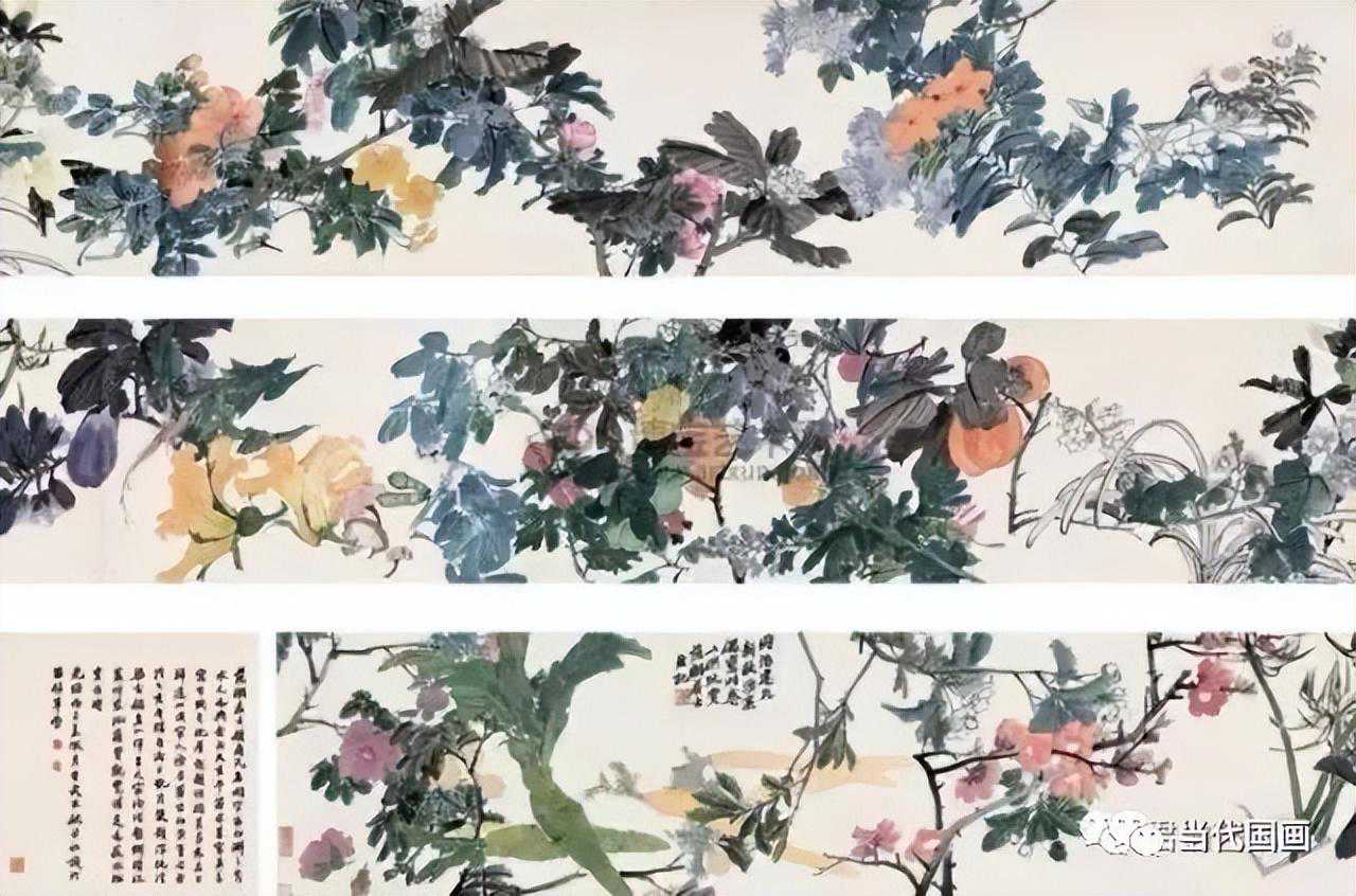 群花图卷手卷设色纸本同治建元(1862年)作