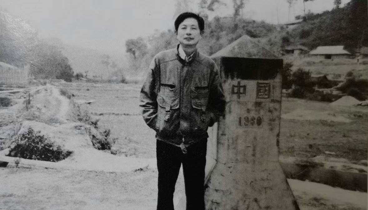回想上世纪八十年代到云南写生,莅临国境线,第一次看到国界碑,并在界碑前照相留念.