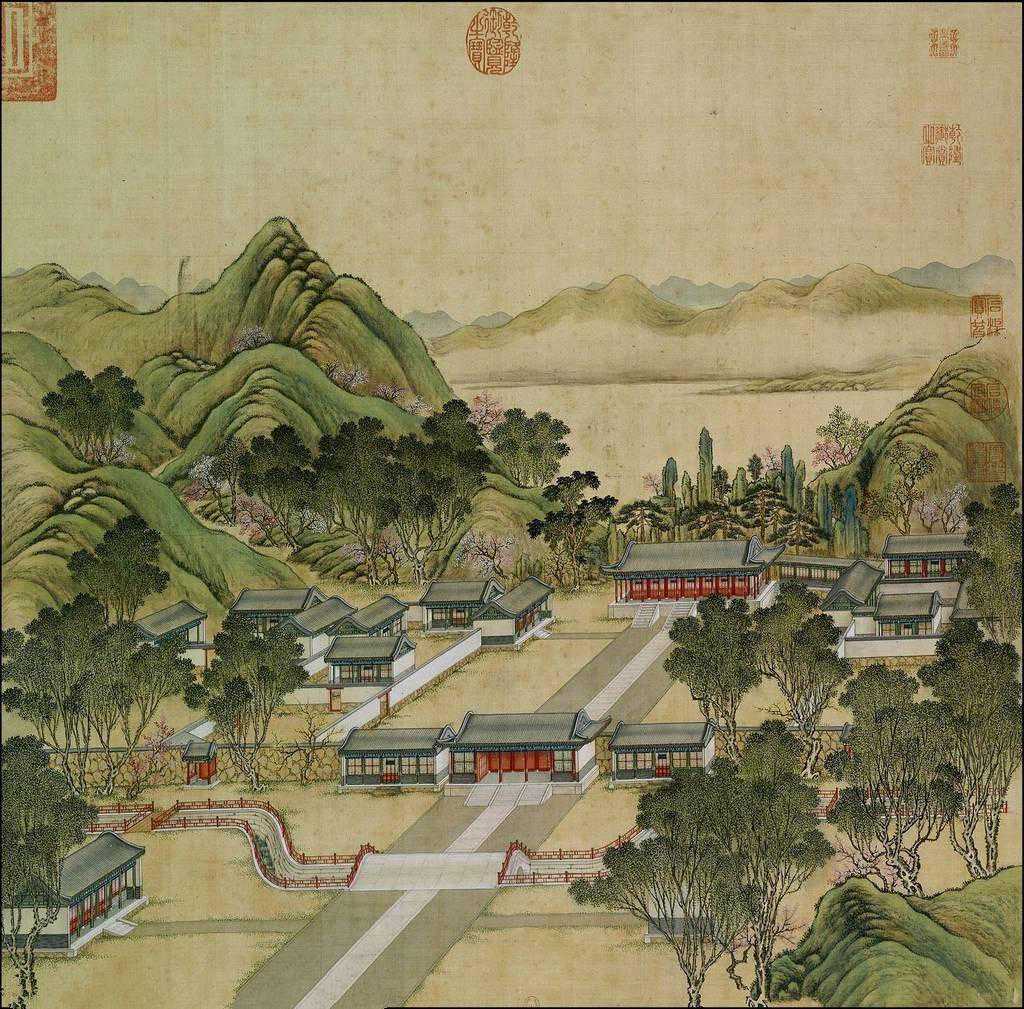 天然图画,位于后湖东岸,南部凿池,北部住院,是欣赏后湖景色,远眺西山风光最佳之所。主体建筑为一方楼,楼北为朗吟楼、竹萿楼、五福堂、竹深荷静,在庭院东侧,西为静知春事佳,东为苏堤春晓。月地云居,佛寺,正殿五楹,前有方殿,后楼七楹。东为法源楼,再东为静室,西北为刘猛将军庙。武陵春色