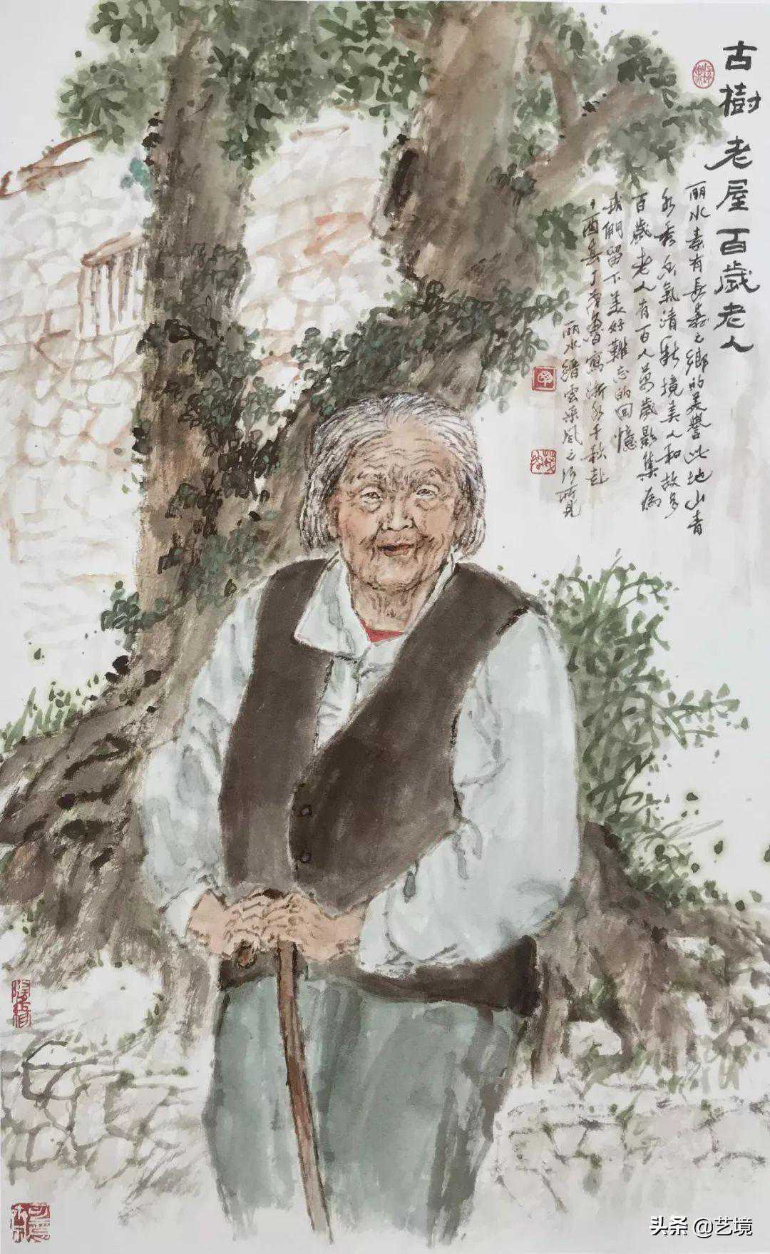古树老屋百岁老人96x60cm