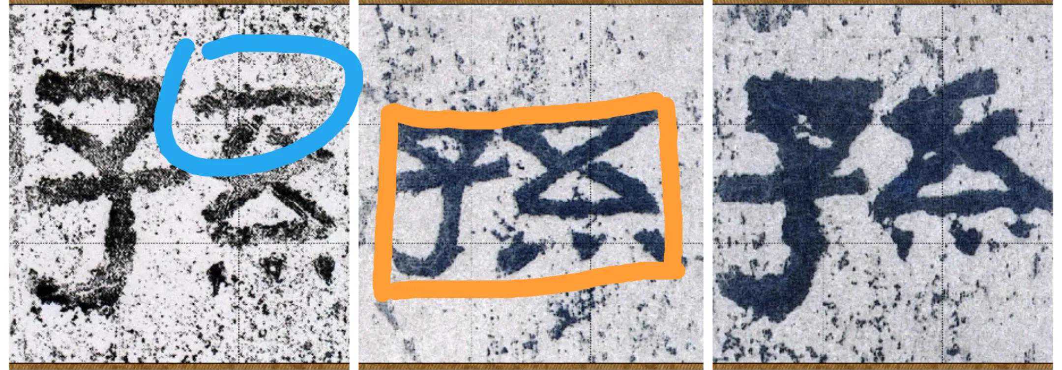 碑阴“孙”右上角比碑阳多一个横,其他结构和碑阳中的一个“孙”很接近。