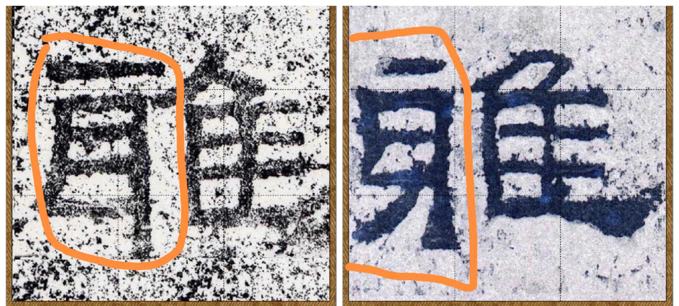 两个“德”右上角结构不同,左小角的竖勾碑阴部分没有。