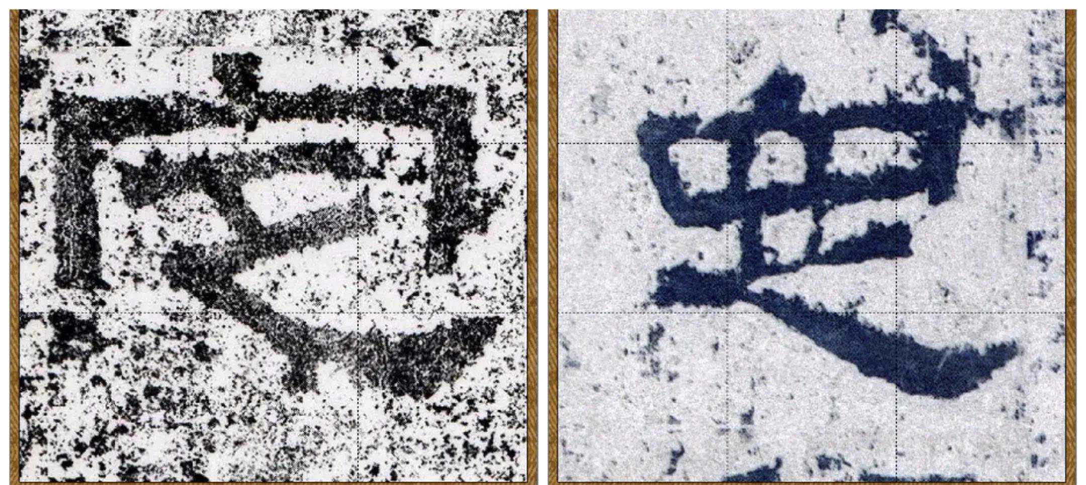通过字的结构造型和一些特殊笔画习惯看,碑阴碑阳书写者应该不是同一个人,但又有着类似的书写传承。碑阴碑阳的刻工应该是同一人,此工匠善于取方。