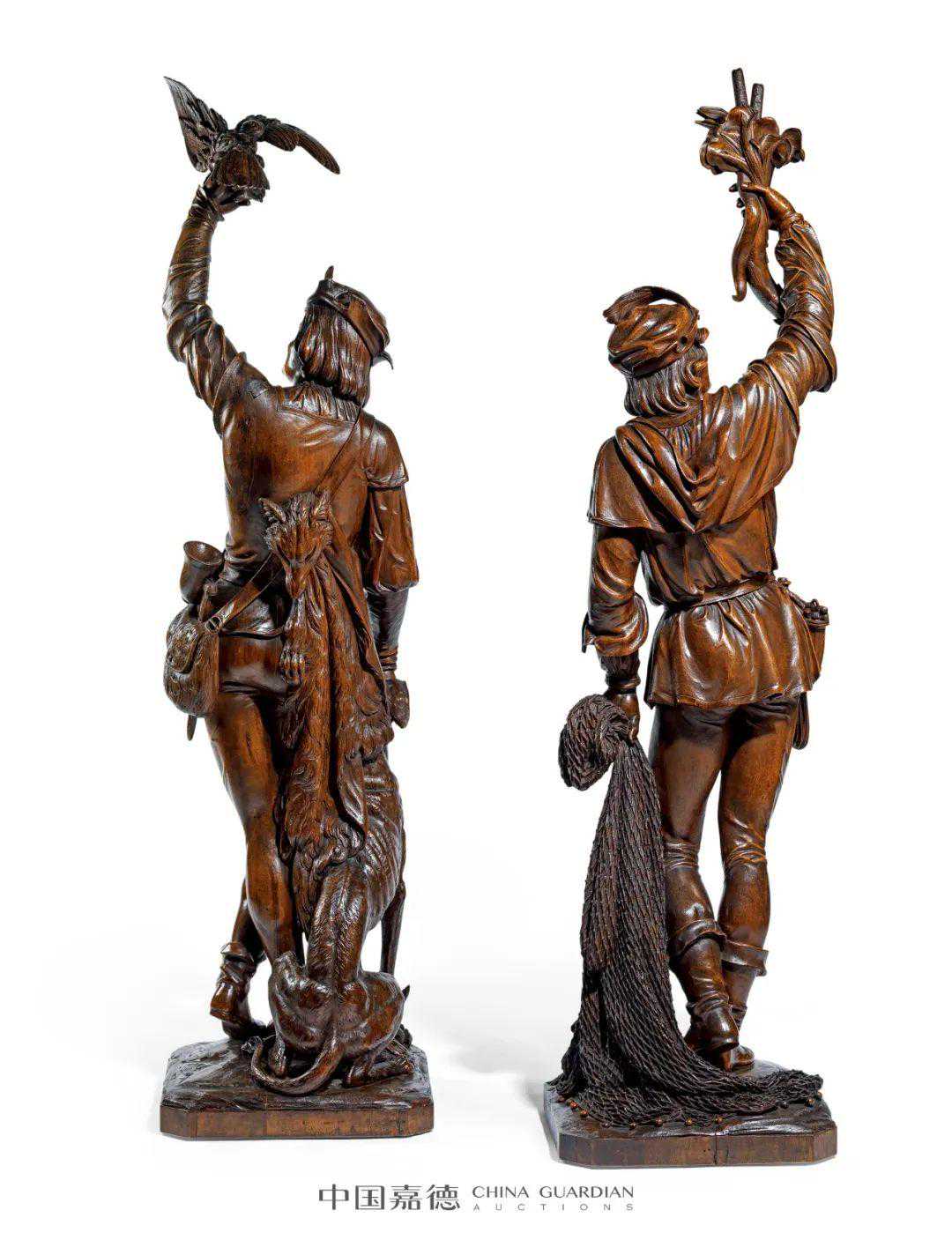 此次拍卖的西洋古董中涵盖了家具、钟表、雕塑、油画等不同门类的欧洲古董装饰艺术品共35件。其中,一对来自英国著名奥尔克罗夫家族旧藏的意大利木雕尤为重要。