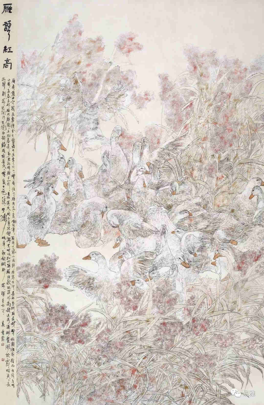 2017年,花鸟作品《雁语红高》入选尚艺·2017全国中国画(写意)作品展。