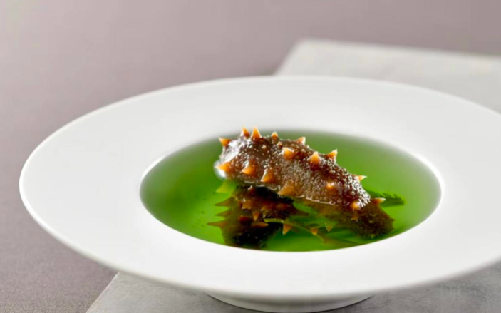 你也可以点几道餐厅的招牌菜,比如原汁海参汤,选用5年以上的野生海参,不经过任何发制,保证营养不流失,烹制过程中只加盐和胡椒粉。有趣的是,海参汤呈绿色,据说是因为野生海参食用天然海藻,所以煮出来的原汤为绿色。还有一道驴胶滋补黑蒜汤也具有典型的齐鲁风味,将驴胶和驴肉文火煨制十几个小时后,加入黑蒜蒸制4个小时,让驴胶、驴肉和黑蒜的营养完全溶入汤中,入口有微微黏稠感,十分香甜。