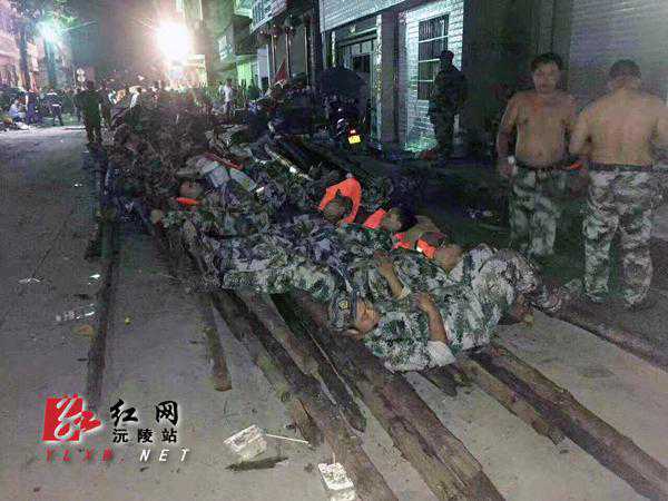 7月1日12时,五强溪防洪堤,数十位迷彩来了!党和政府看到了希望,老百姓盼来了救星。