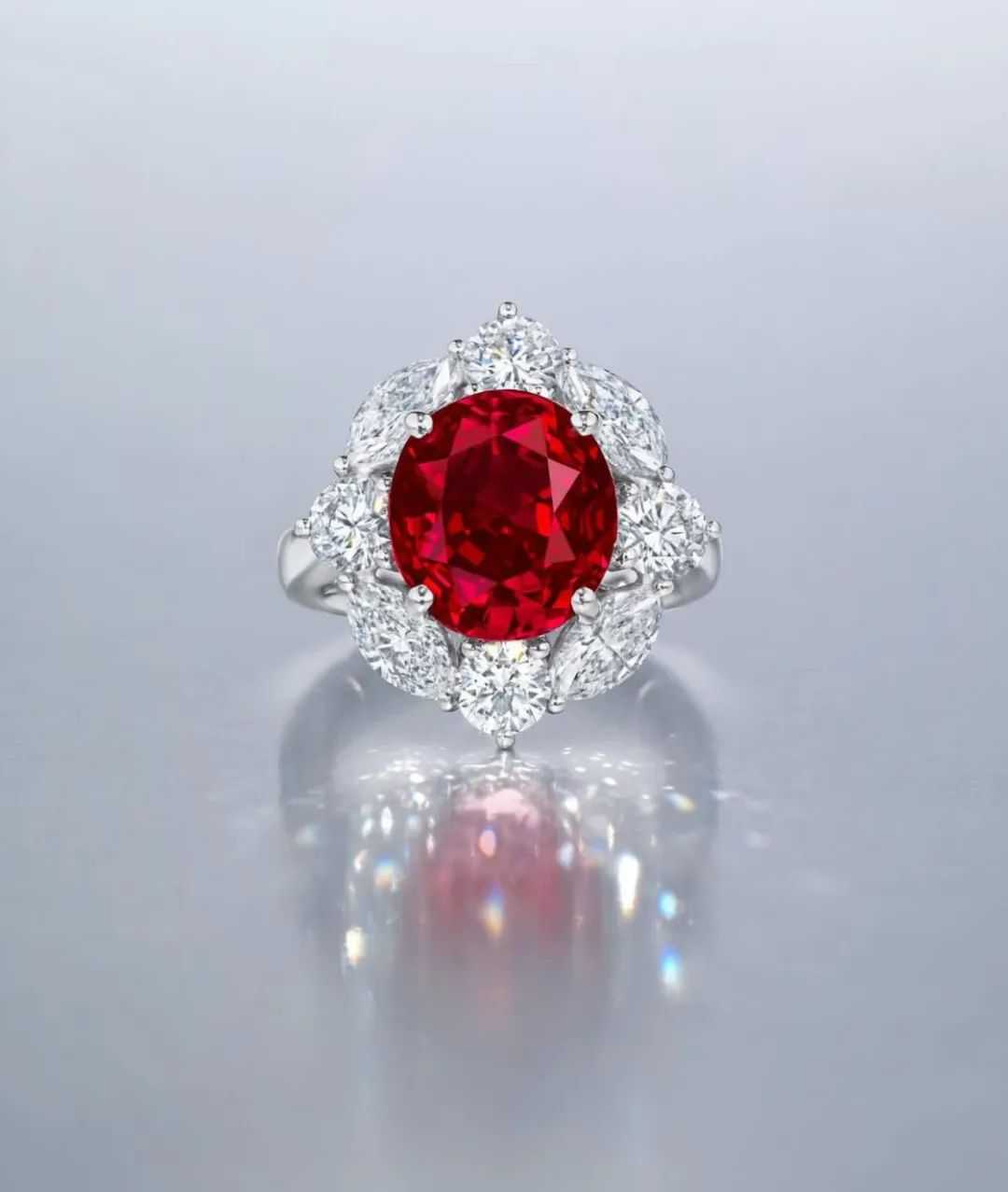 2、8.01cts缅甸无烧“鸽血红”红宝石钻戒,计拍卖价为HKD15,000,000元-25,000,000元。