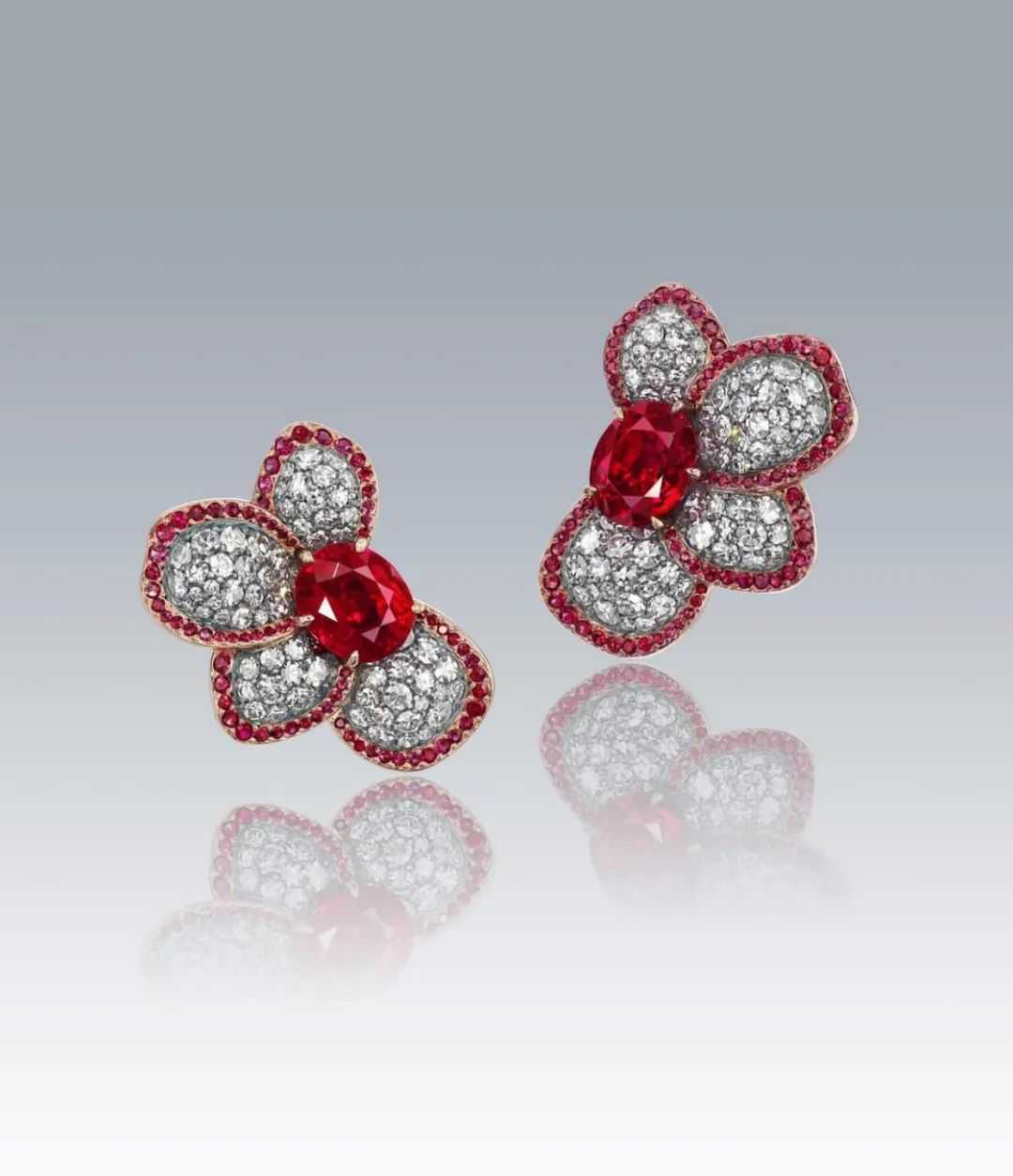 3、这对红宝石分别为4.58cts和4.23cts缅甸无烧“鸽血红”红宝石和钻石耳环预计拍卖价为HKD2,800,000元-3,800,000元。