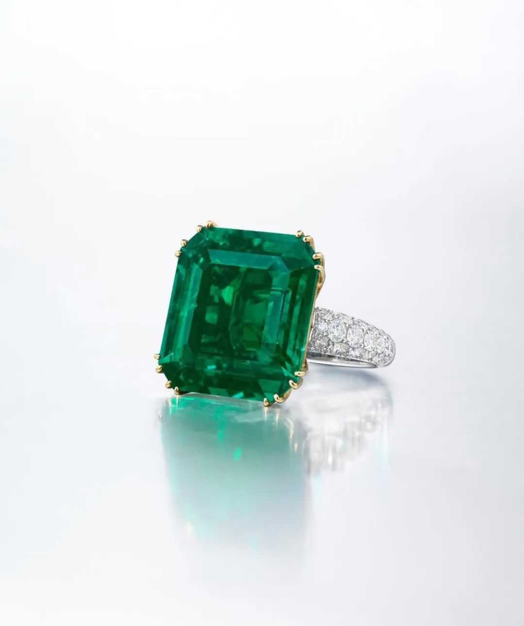 4、这枚戒指重20.69cts,它是用哥伦比亚无油祖母绿和钻石制作的戒指,它由吉美(Gime)制作预计拍卖价为HKD12,000,000元-18,000,000元。
