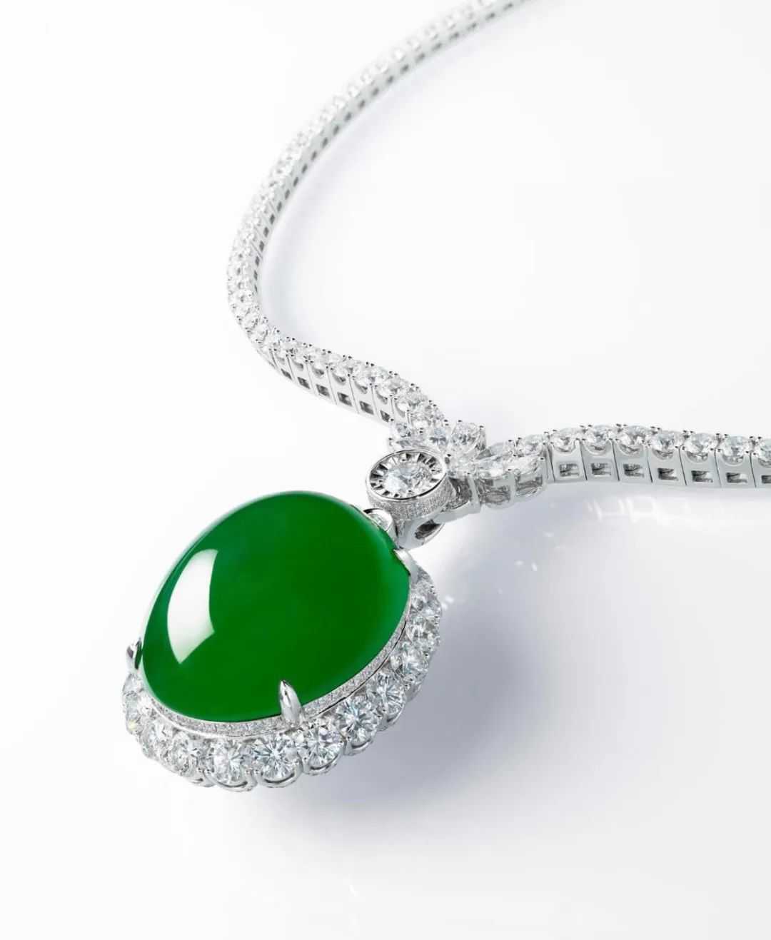 5、这件缅甸翡翠和钻石制作的项链预计拍卖价为HKD15,000,000元-25,000,000元。