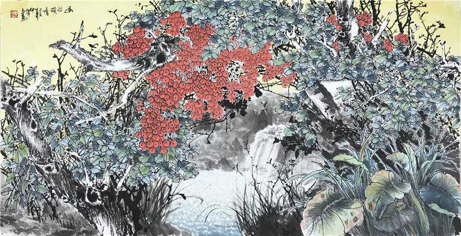 韦仲传能画巨幅的写意画,从大效果的把握和细节的刻画都心里有数,又有精雕细刻的细节点画形成对比,可谓远看其势,近看其质,若能假以时日,功力再长,画路再宽,再朝精深拓进,必将在花鸟画的传承发展中取得更大的进步。