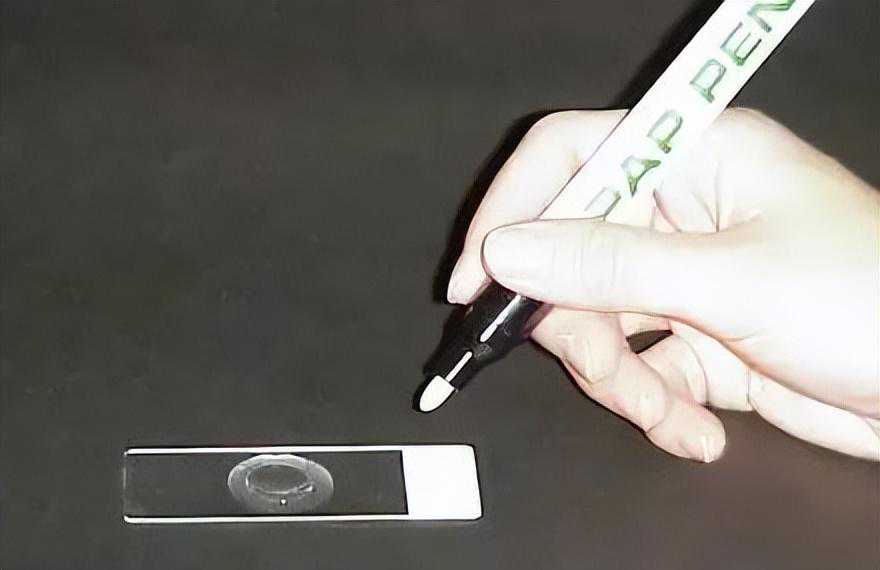 4)、画圈:切片甩干后,组化笔在组织周围画圈。