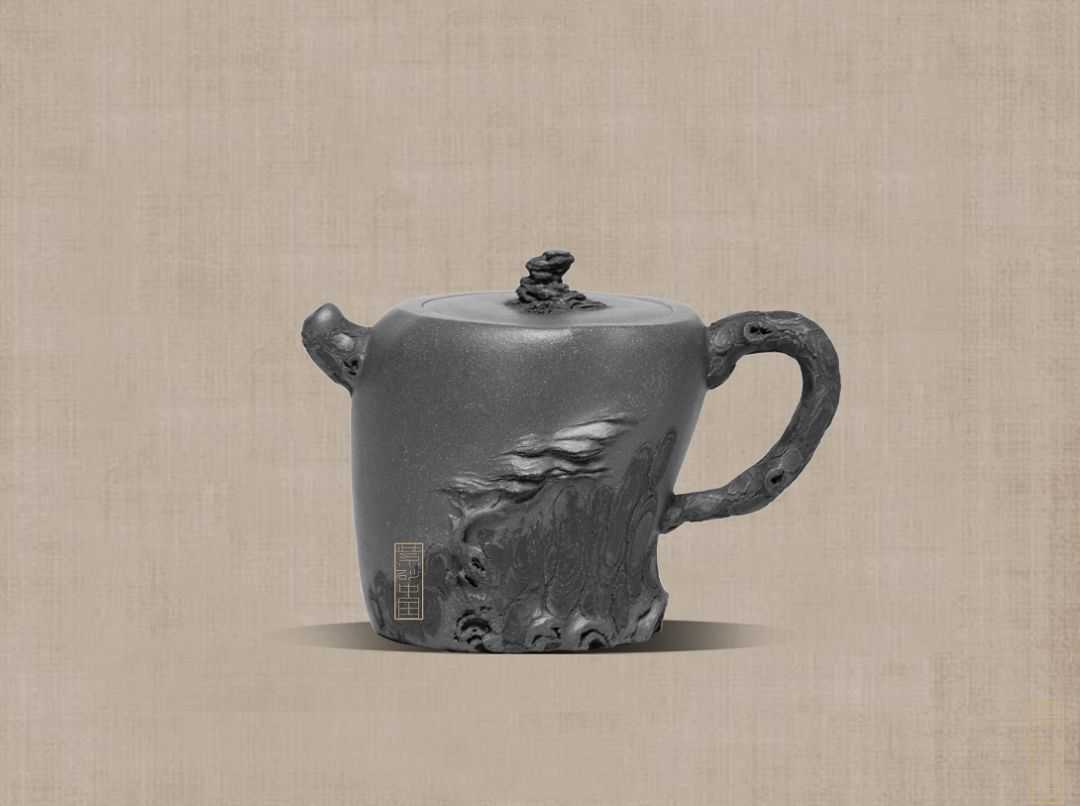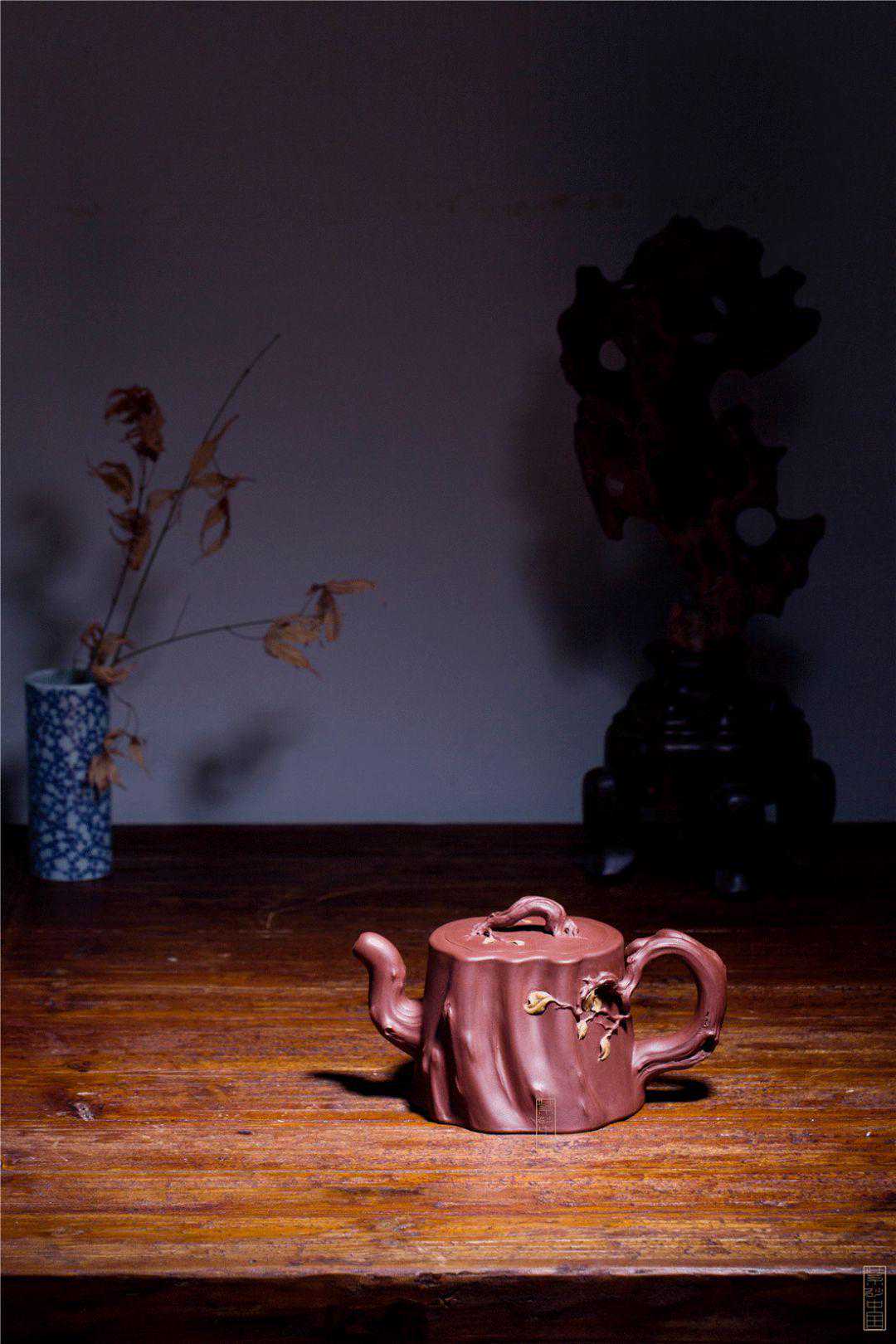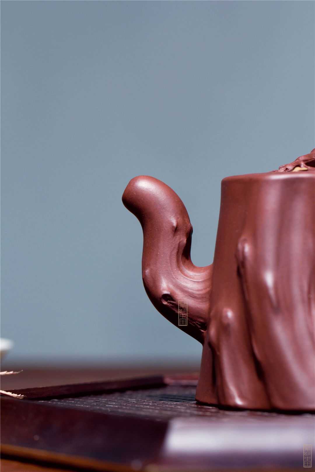 此壶完美模拟了老树最原始的形态,将树桩斑驳而不失苍劲的形象特点展现的淋漓尽致,流露出树桩旺盛生命力的自然风韵,整体造型返璞归真而不失艺术提炼。