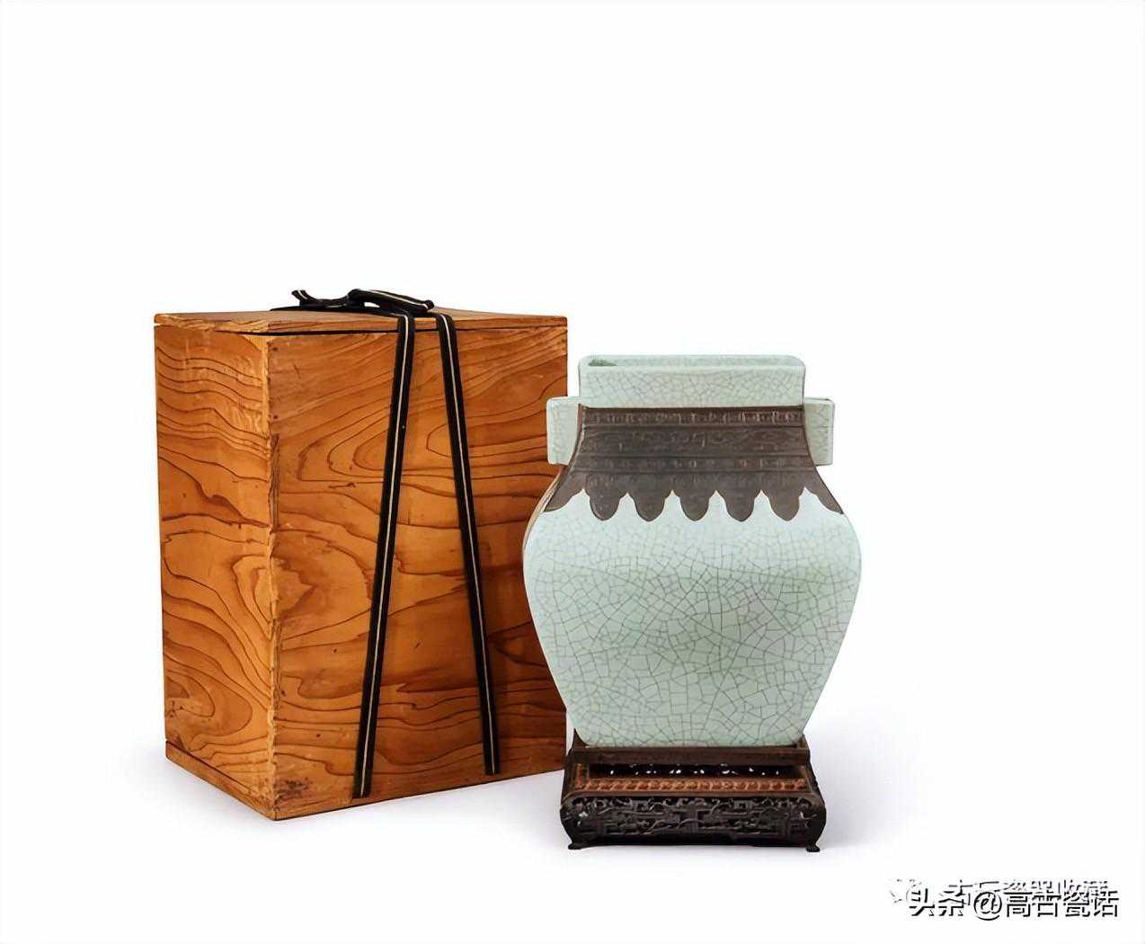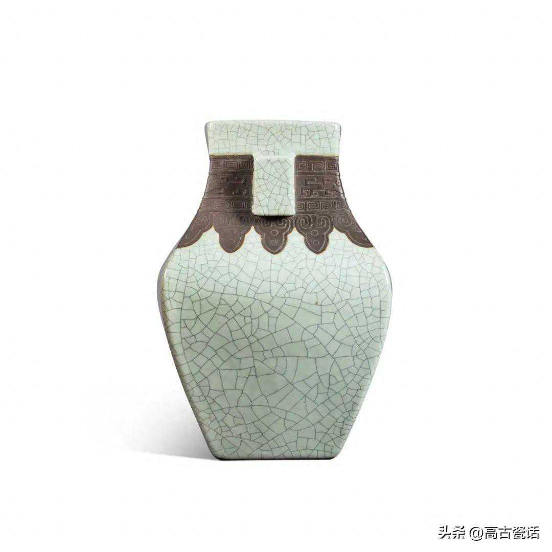 清雍正仿哥釉古铜纹贯耳方壶
