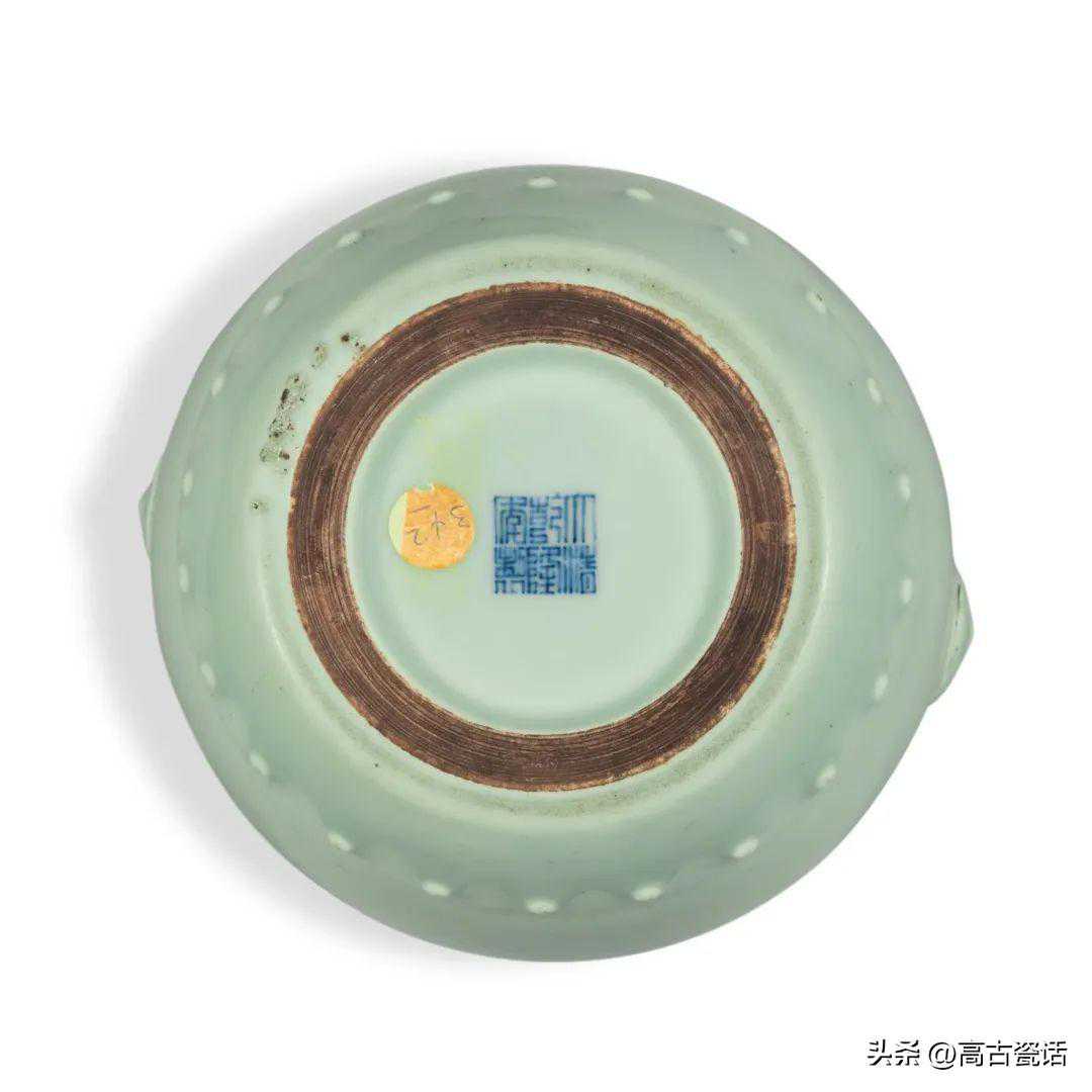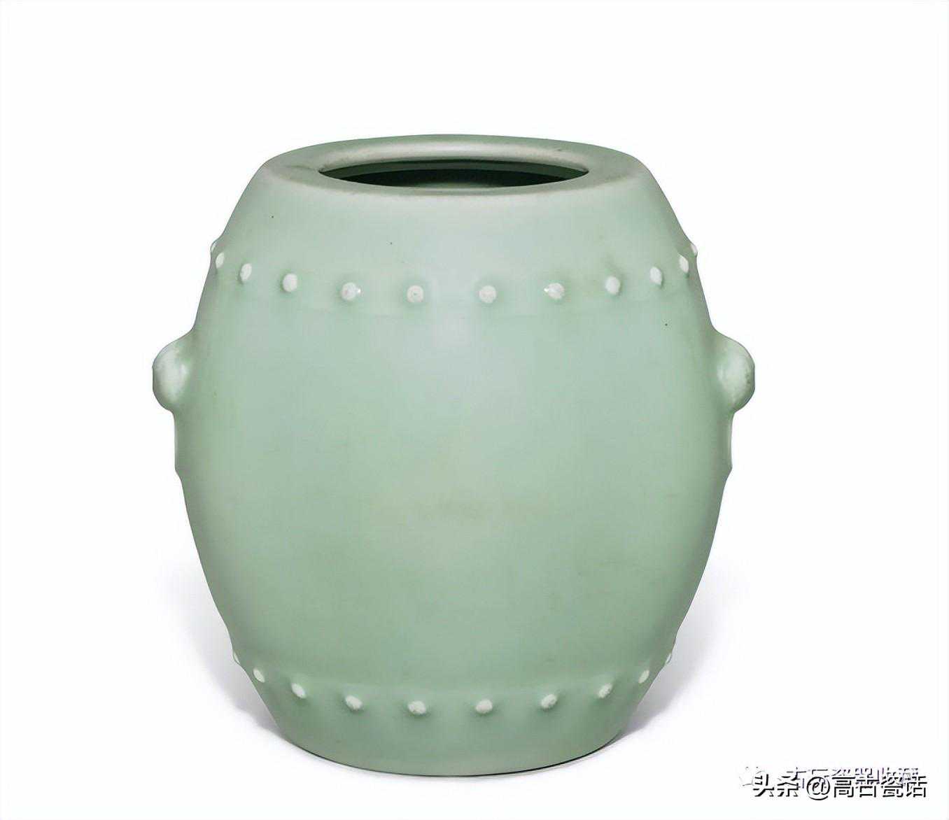 清乾隆粉青釉辅首耳鼓式罐