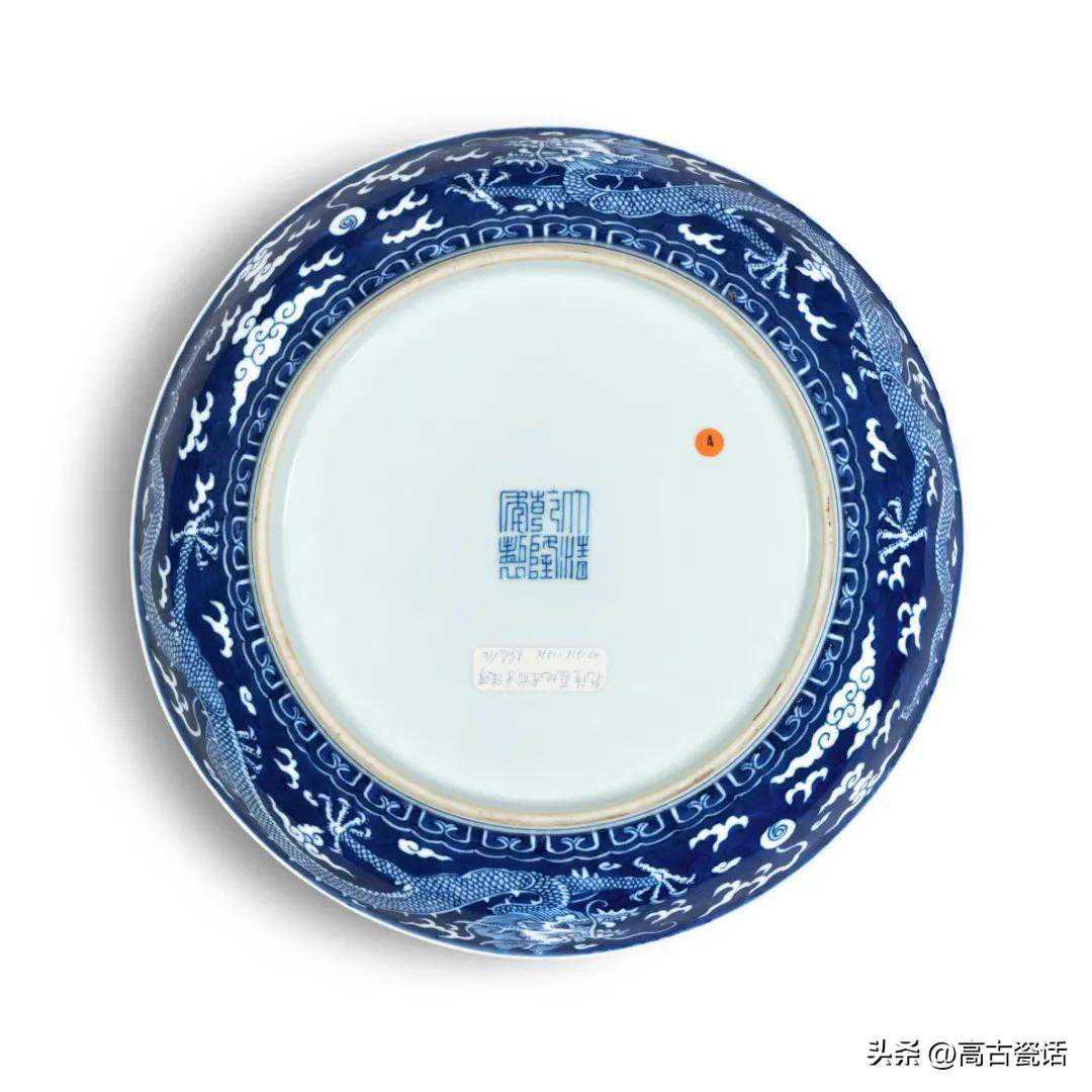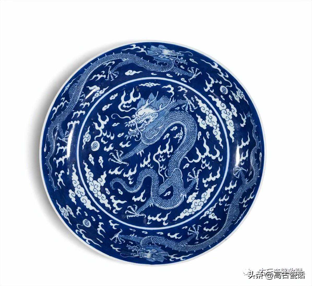 清乾隆青花地留白游龙戏珠纹盘
