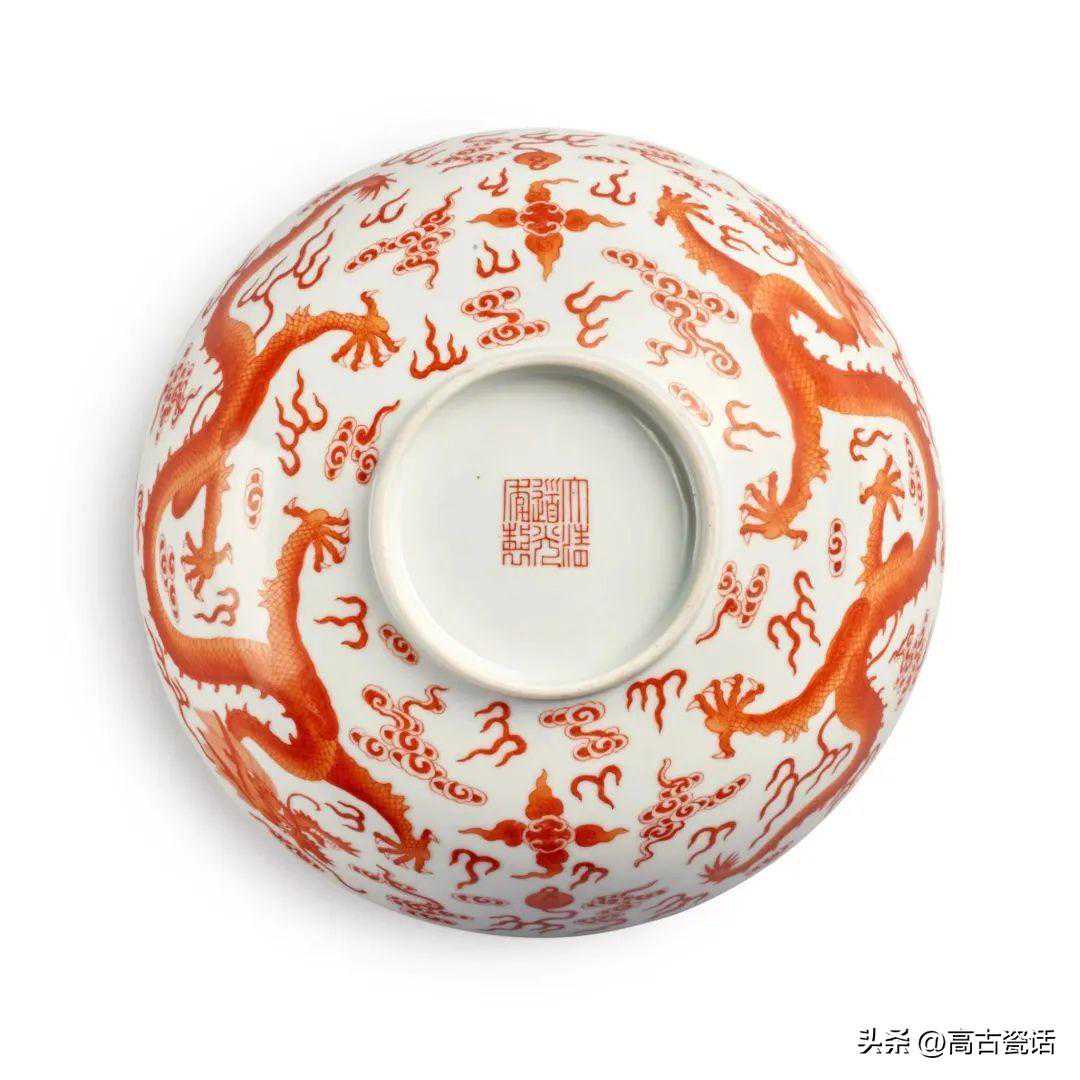 清道光矾红彩双龙戏珠纹盌