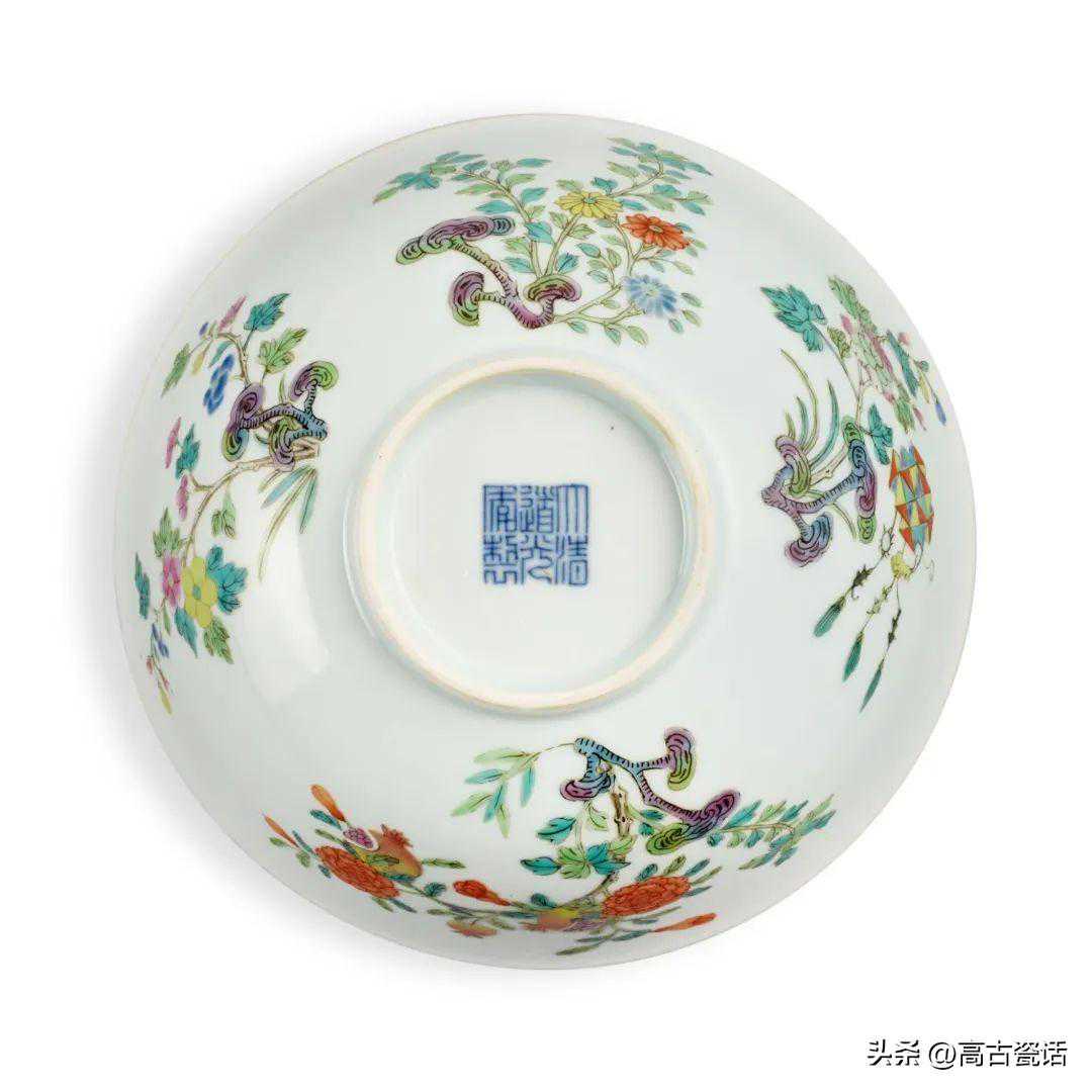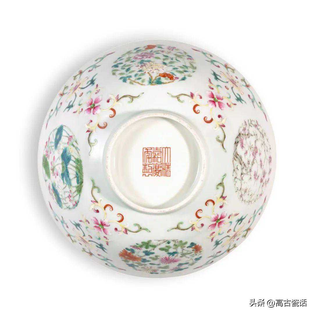 清嘉庆粉彩四季团花纹盌