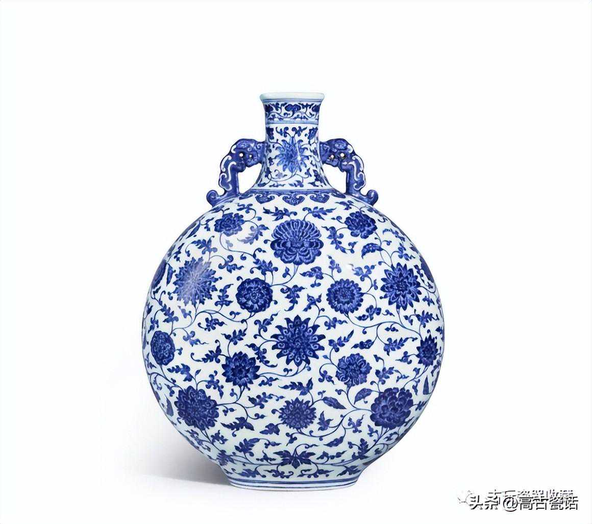 清乾隆青花缠枝花卉纹夔龙耳大抱月瓶
