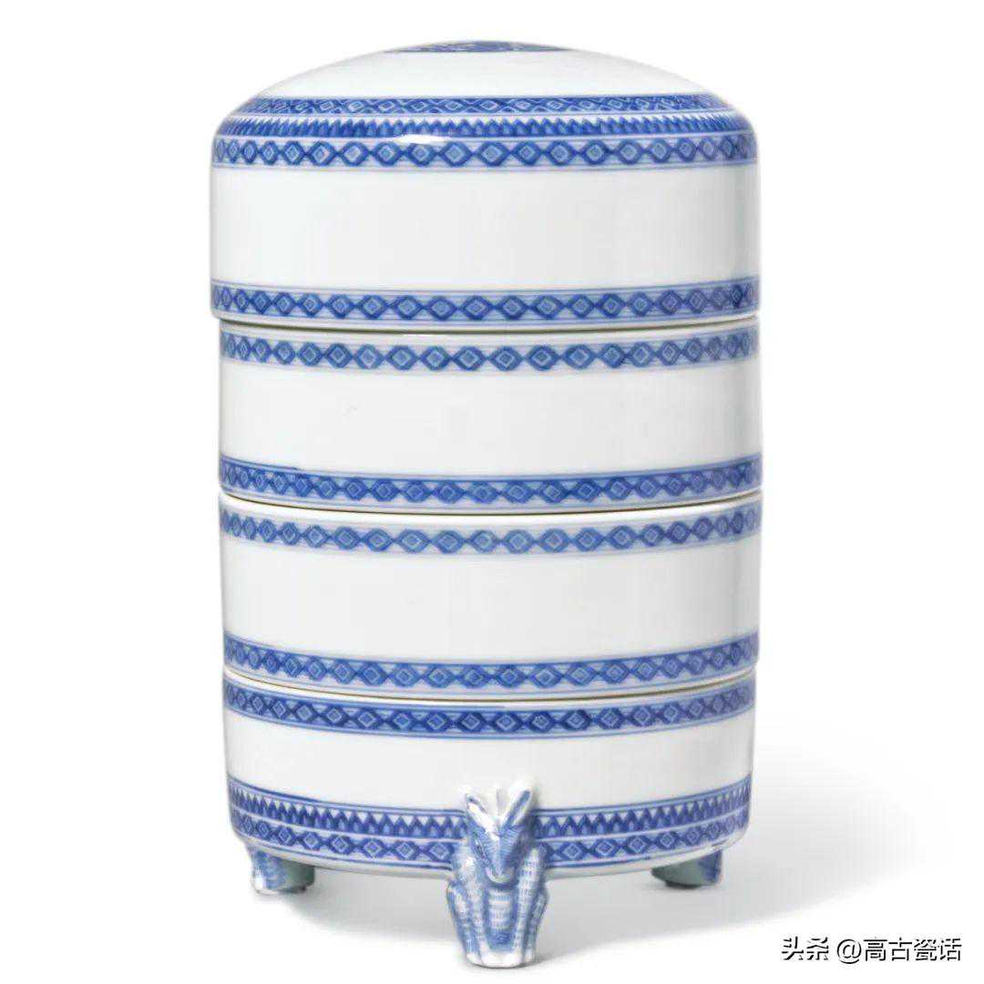 清康熙青花团凤纹兽足三层盖盒
