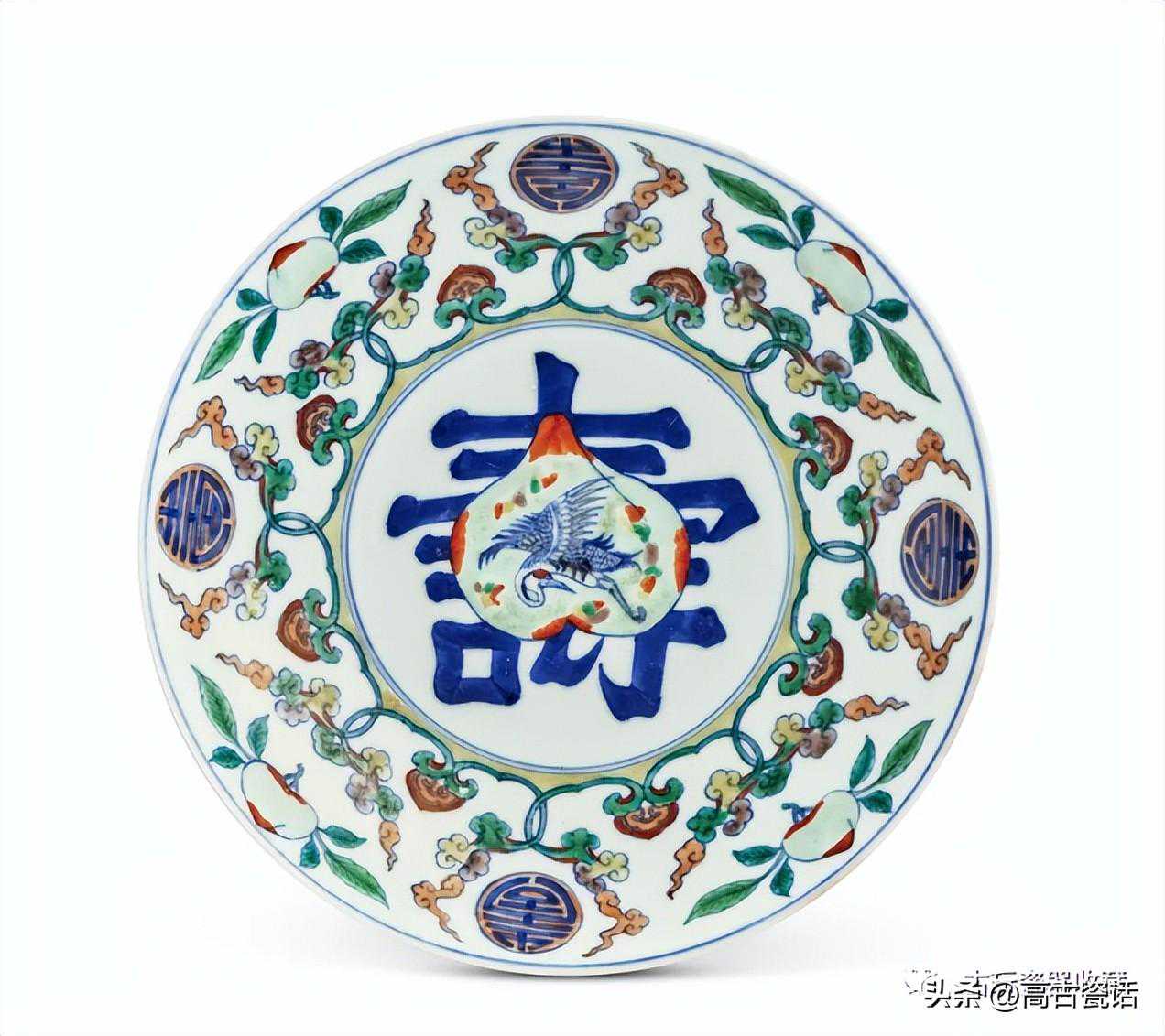 清雍正斗彩寿桃纹盘
