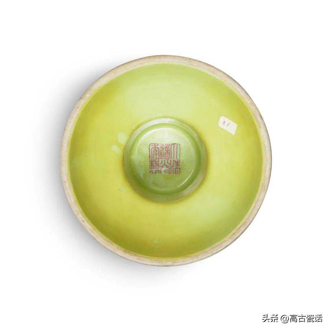 清雍正米黄釉盌