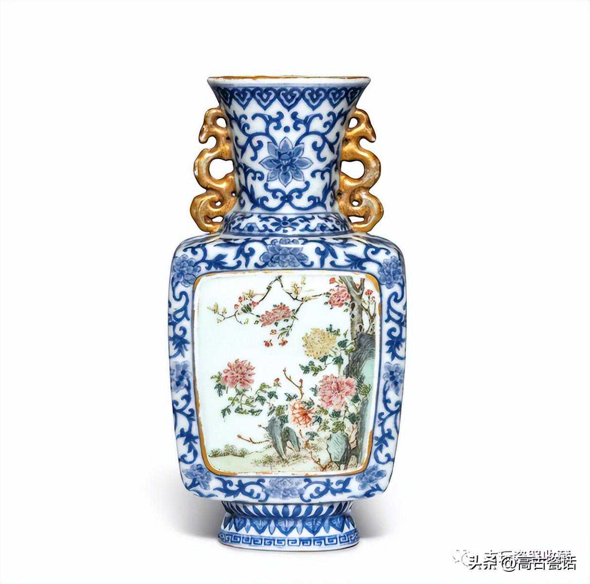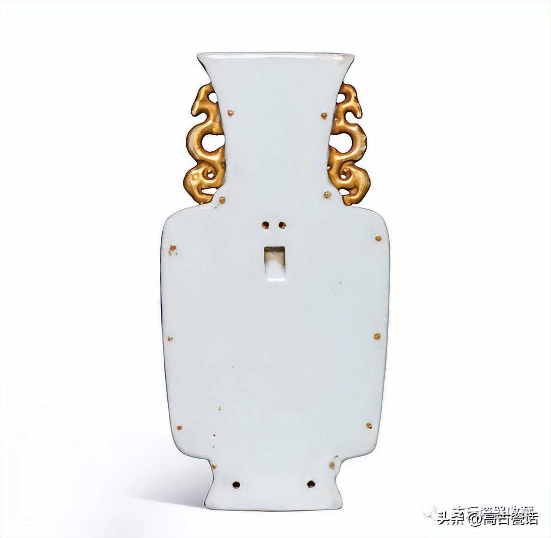 清乾隆青花粉彩描金开光牡丹图双耳壁瓶