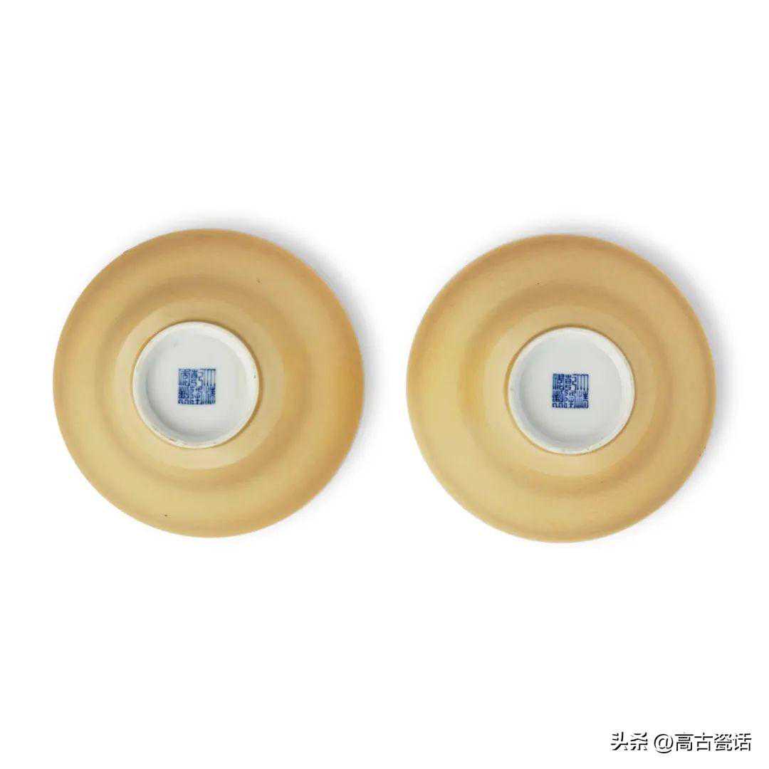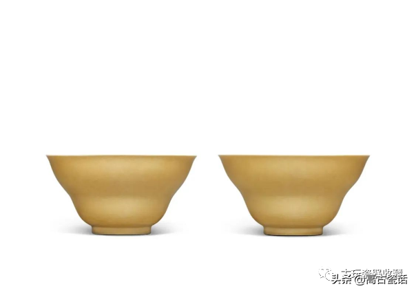 清乾隆米黄釉折腰盌一对