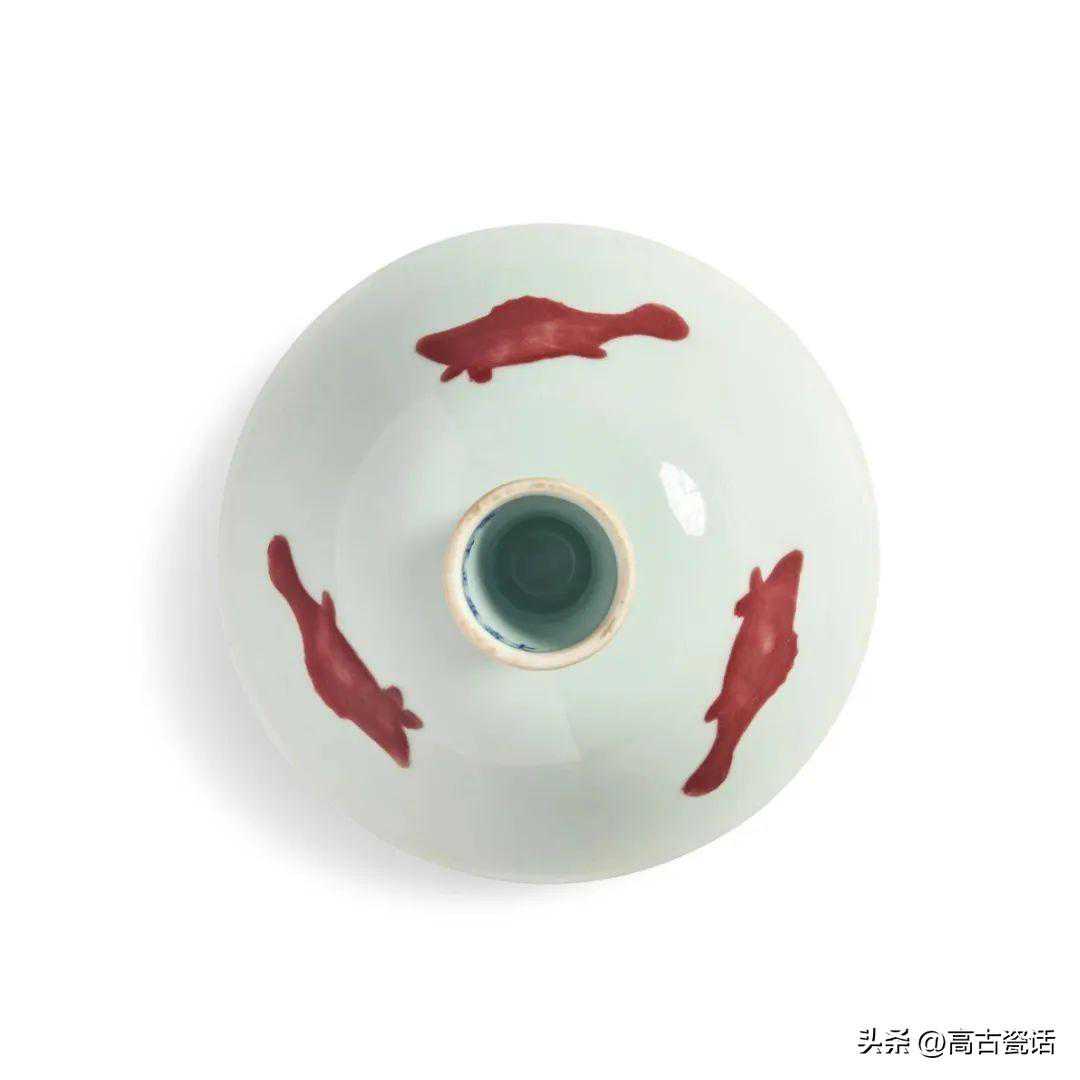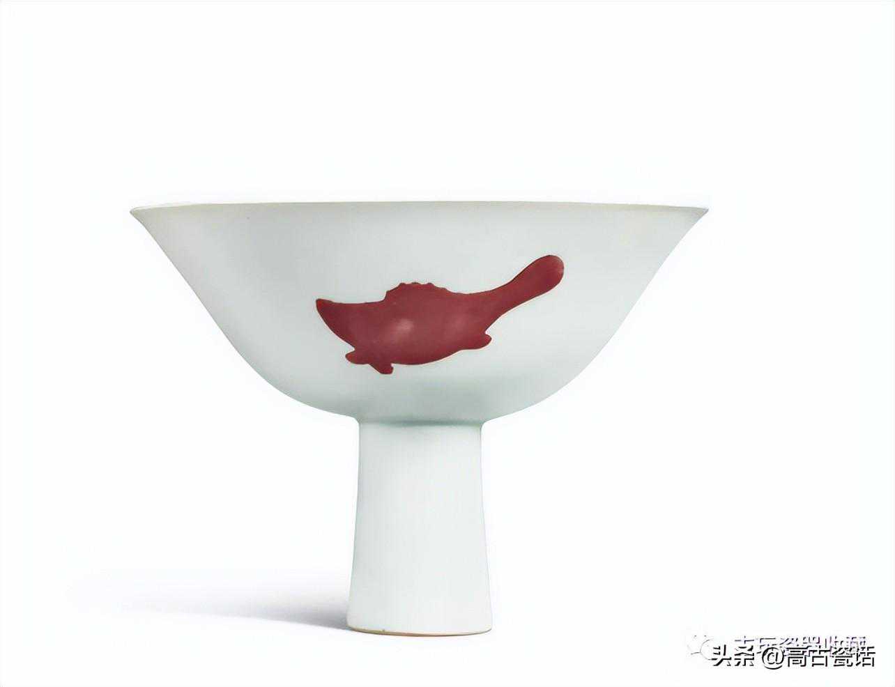 清雍正釉里红三鱼纹高足盌