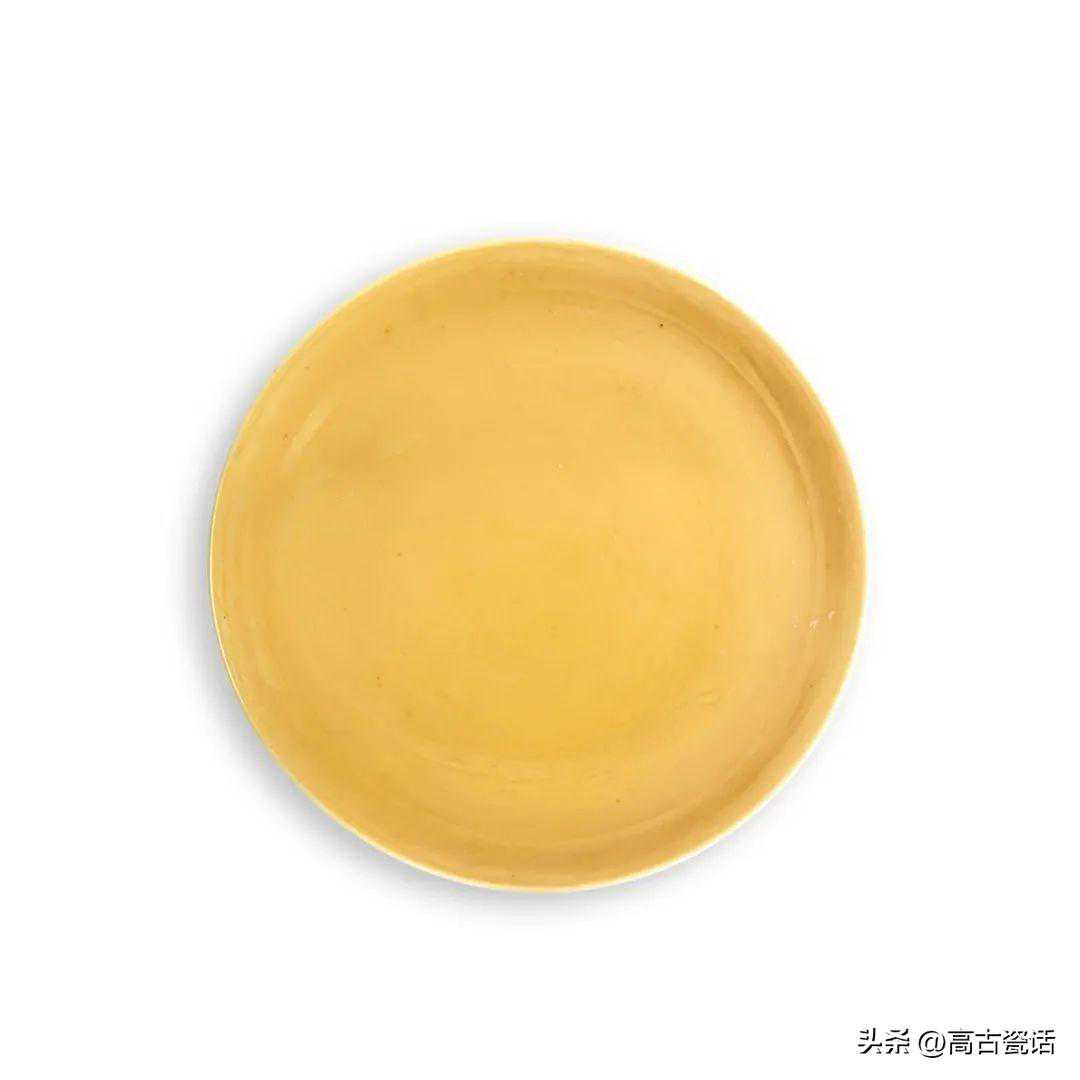 清雍正黄釉暗刻缠枝花卉纹盘
