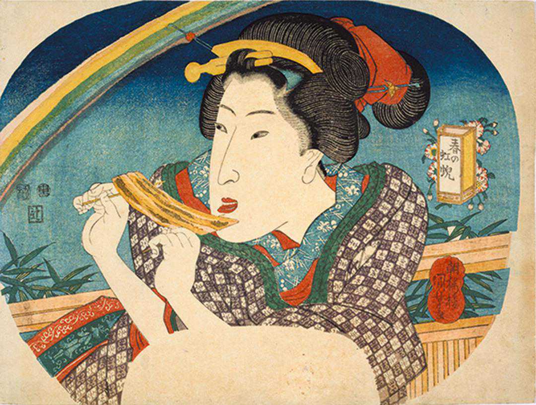 了解了这种食物的来龙去脉和背景,再看浮世绘,就会明白画中的女子为什么要开开心心地吃东西了。