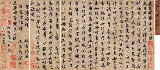 此《心经》点画遒劲,结体宽绰秀美、骨架劲挺,点画之间呼应紧密。此件作品经袁克文题耑并后跋。经项元汴、何溥、成勳、奕訢、王懿荣、袁克文、谭踽盦、谭天祺、张静江等收藏家递藏。据悉,此件拍品买家为甘肃天庆博物馆。