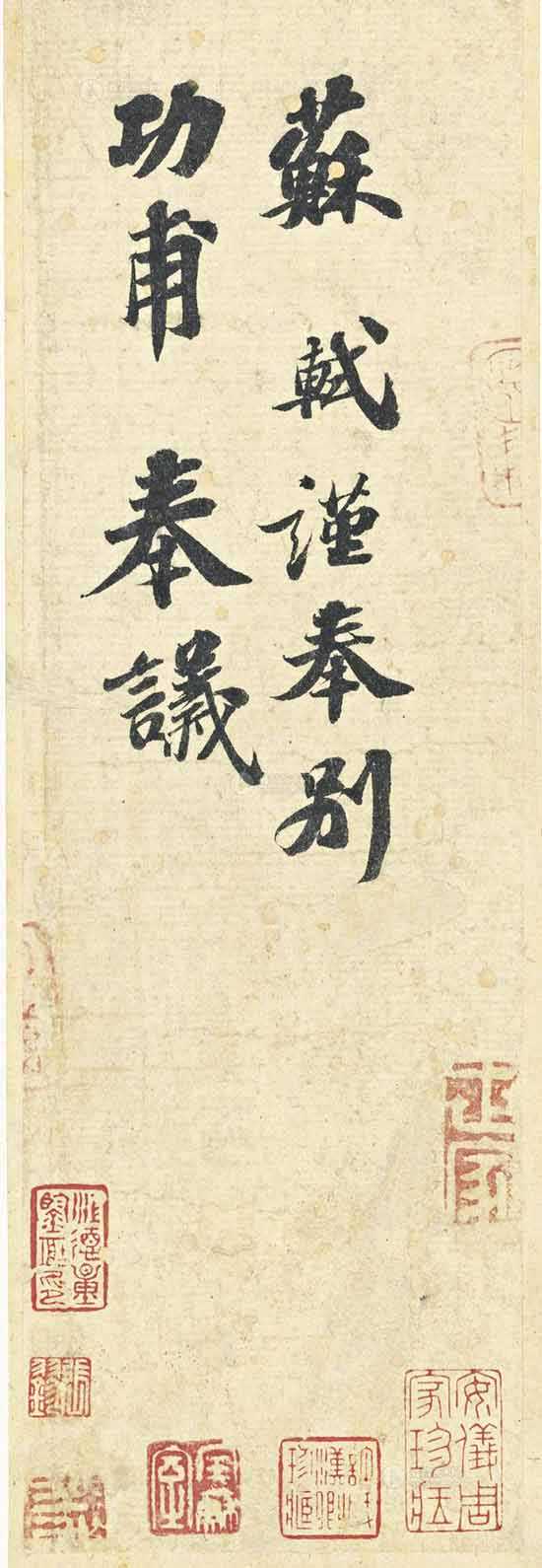 曾巩(1019—1083),字子固,汉族,建昌军南丰(今江西省南丰县)人,后居临川,北宋散文家、史学家、政治家。此件作品结字修长,笔划清劲。这幅作品曾经何良俊、项元汴、安仪周、王芑孙、曾燠、费念慈、许源来、张珩、张文魁等收藏,并经徐邦达先生考证和著录于《古书画过眼要录:津隋唐五代宋书法》,朱家溍先生编写进《历代著录法书目》。据悉,此件拍品由华谊兄弟传媒董事长、藏家王中军竞得。