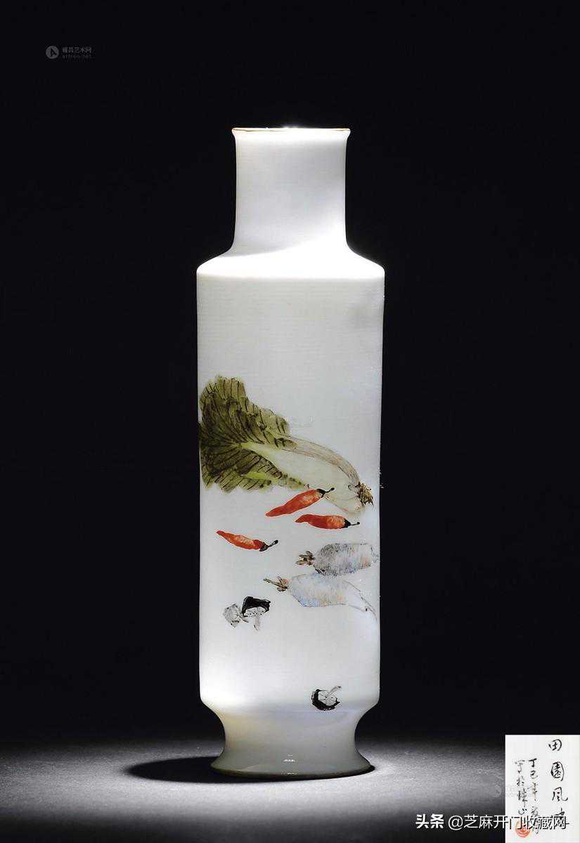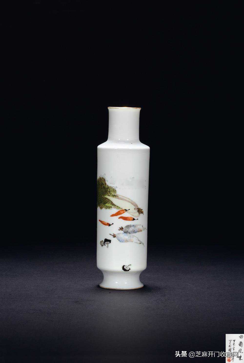 1977年文革粉彩蔬果纹蛋壳胎小瓶,尺寸:高13.5厘米,估价:RMB20,000~30,000,成交价:RMB92,000