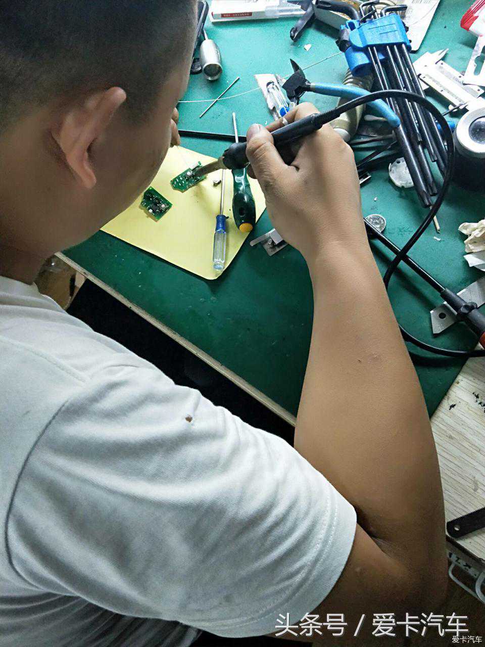 钥匙遥控不灵,线路板没问题,按键坏了。去掉旧按键,焊接两个新的按键