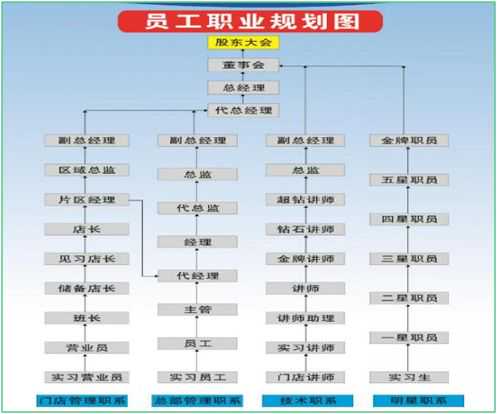 第三个是职业生涯通道规划,也做了一个模板,大家可以了解一下。这模板有几点要求,第一点千万不能做单一通道,至少有两到三条路,而且必须有专业的通道和管理通道,两条通道必须分开。第二点要都能够达到顶层,第三点是要让每一个人都能够可以成为股东模式。第四点,通道与通道之间,横向可以转岗。