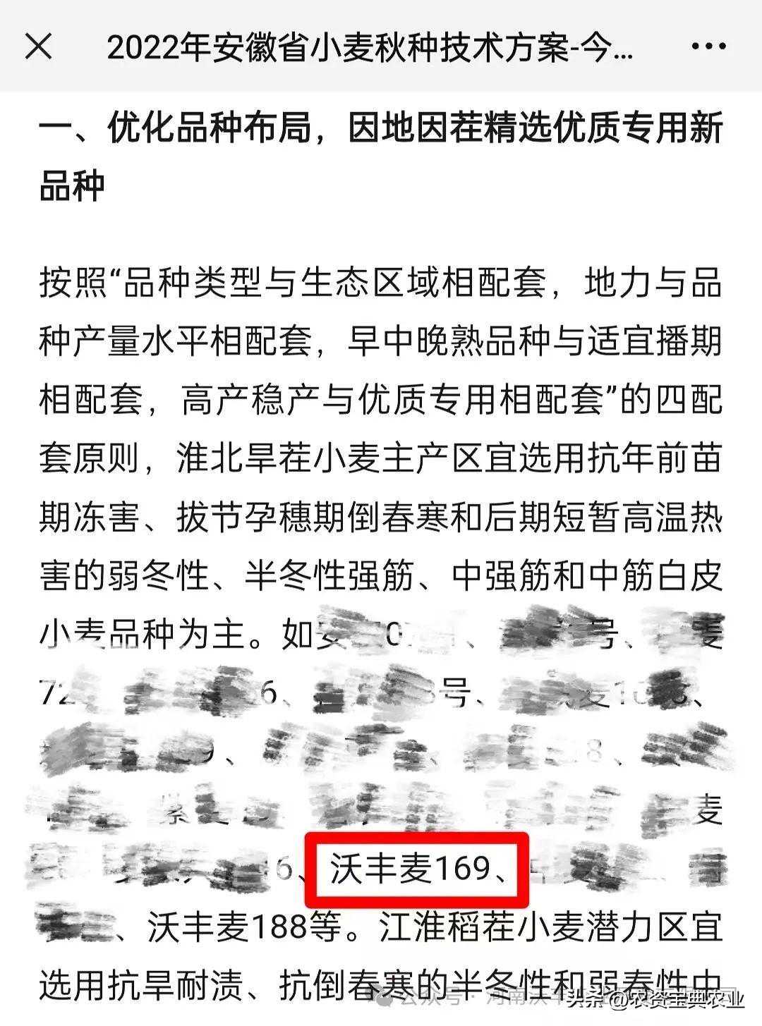 沃丰麦169这一高产小麦品种,于2022年安徽省小麦秋种技术方案中,被安徽省农业农村厅列为淮北旱茬小麦主产区适宜品种;于2024年被河南省农业农村厅列为河南省农业主导品种。
