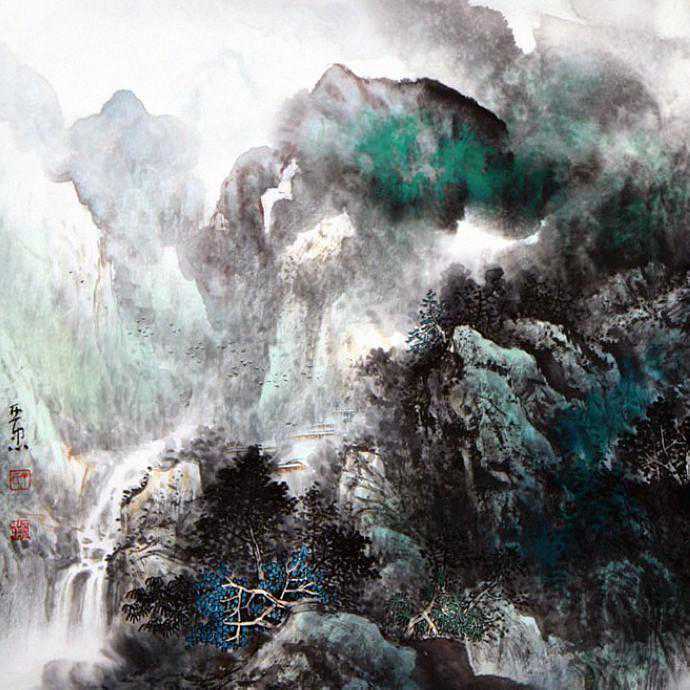 丁亚忠的山水画主要是以祖国大好河山为题材,在技法上吸取张大千、刘海粟、宋文治、黎雄才、白雪石、傅抱石等名家不同风格的艺术精华,在大自然的造化下独具风格、自成一家。丁亚忠用笔刚劲、墨迹豪放、色彩浓烈、气势撼人。作品中既有八大山人的豪放、石涛的野逸,也有黎雄才、张大千的苍润、黄宾虹的厚重、傅抱石的潇洒以及潘天寿的霸气。丁亚忠之画风,具有传统气息,却不为传统所束,广临诸家,博采众长。渐年又遍阅画理史论,以辅蒙养,旅登五岳,临黄山、游三峡、泛五湖,多处写生,搜尽奇峰,历练学养、纳古收今、中西合璧、独具匠心,尤以泼墨泼彩胜出,更是艳丽中透古雅,自得天然气韵,为之一绝。