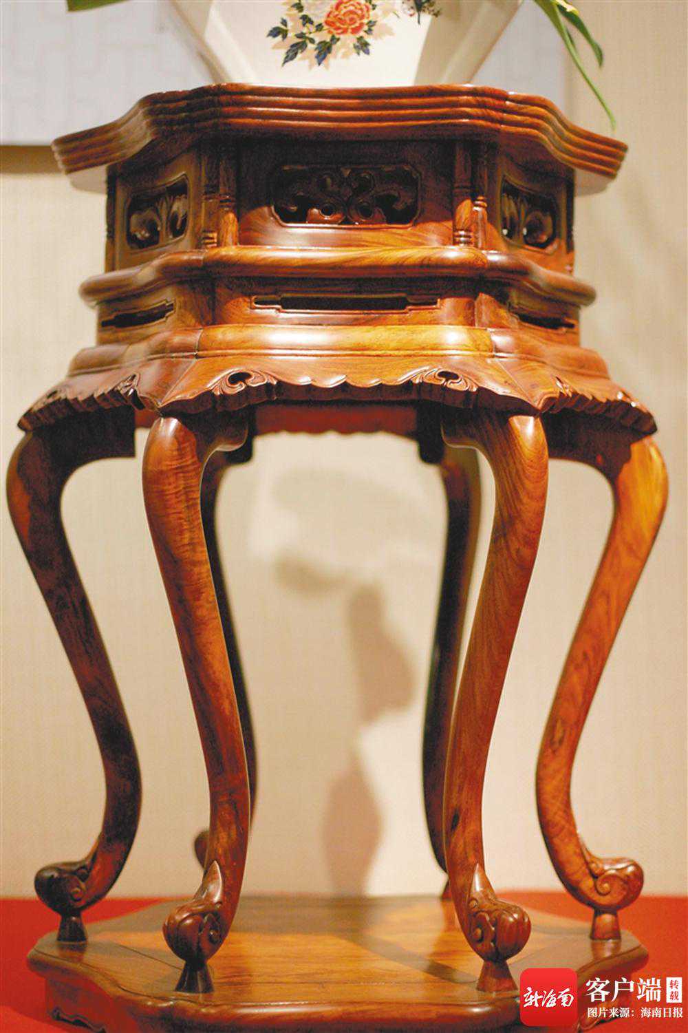 不用一滴胶水、一颗钉子,以精密巧妙的榫卯组合部件,使家具能适应冷热、干湿变化,这也是黄花梨家具能保存百年而“身形”不走样的原因之一。在周凤姣看来,海南黄花梨材质坚韧细密,纹理瑰丽多姿,手感温润如玉,这些特质促进了榫卯工艺的发展和明式家具的兴起繁荣。